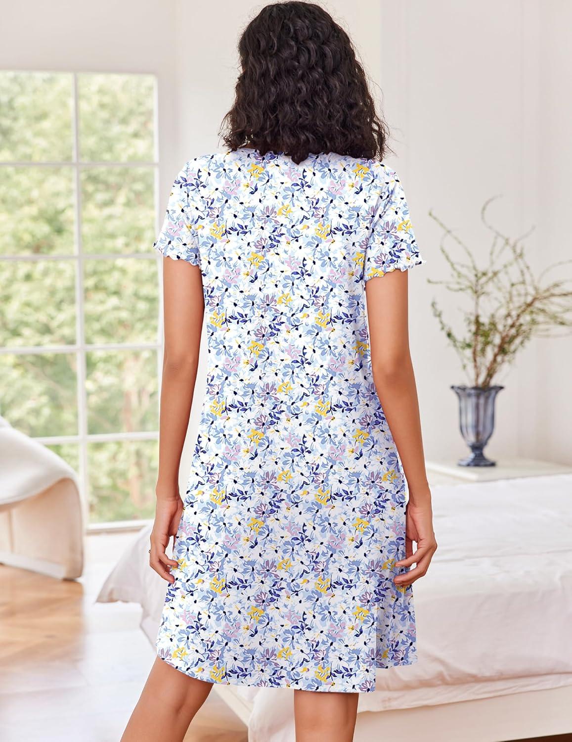 Discover the latest Ekouaer 2 Pack Nightgowns for Women Button Down Night Shirts Short Sleeve Sleep Shirts V Neck Sleepwear Pajama Dress(Green Flowers Blue Flowers) from and take advantage of our limited-time introductory offer.