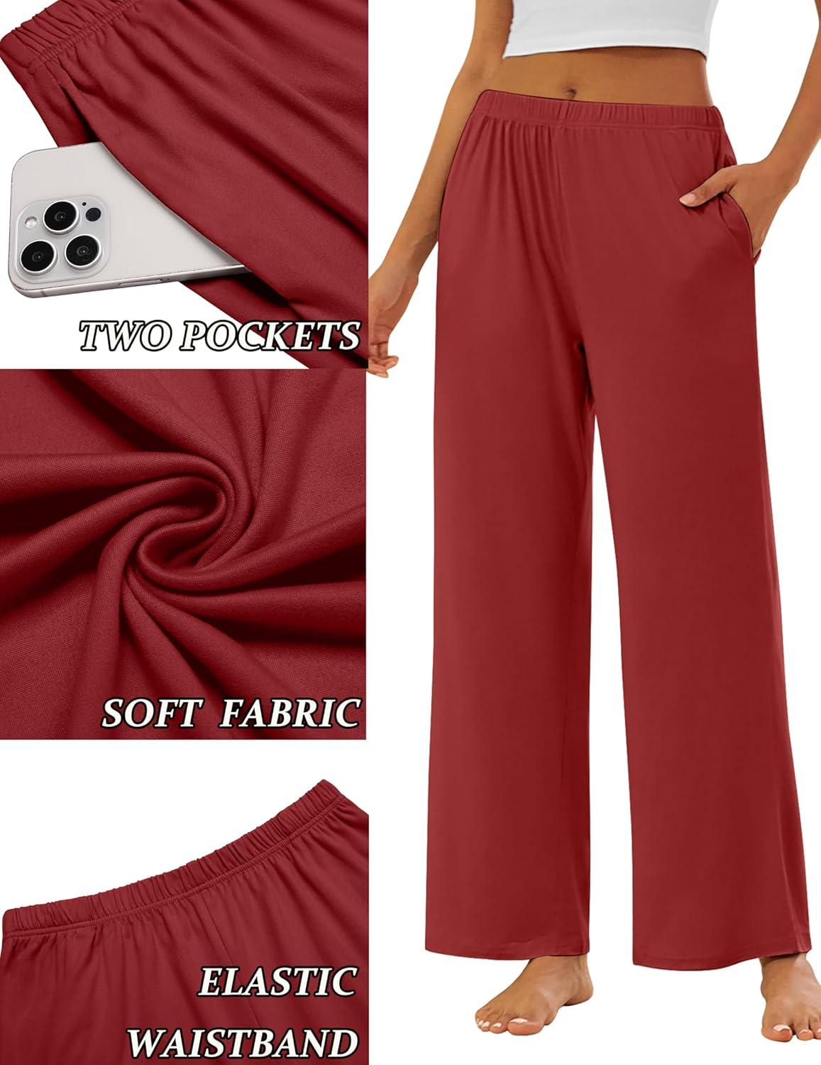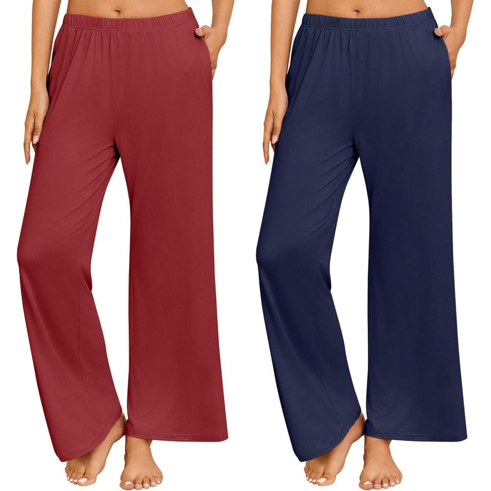 Ekouaer 2 Pack Women Pajama Pants Soft Casual Pajama Bottoms Comfy Wide Leg Sleep Pants Pj Bottoms with Pockets(Wine Red+navy)