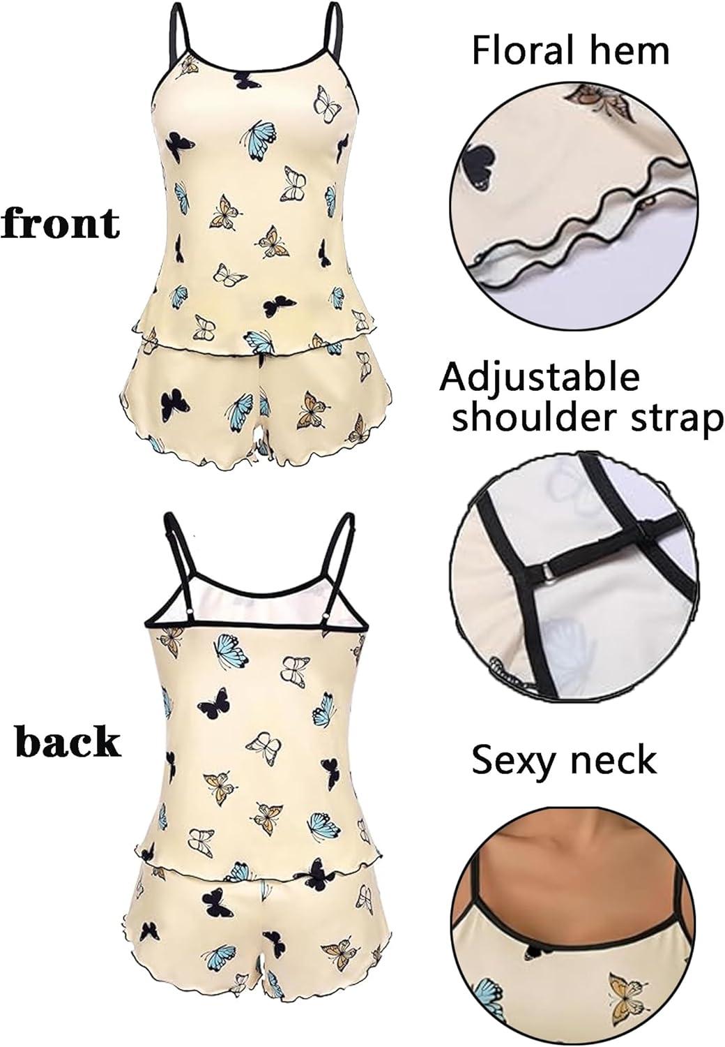Ekouaer 2 Pack Womens Cami Pajama Sets Cute Print Tank Top Pjs and Shorts Camisole Lounge Set(Pueple Butterfly&candy Print)