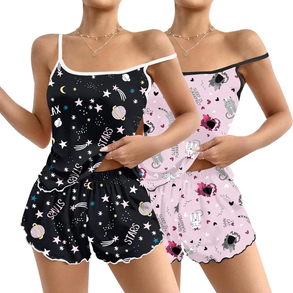 Be the first to review “Ekouaer 2 Pack Womens Cami Pajama Sets Cute Print Tank Top Pjs and Shorts Camisole Lounge Set(Starry Sky&cute Cat)” Cancel reply