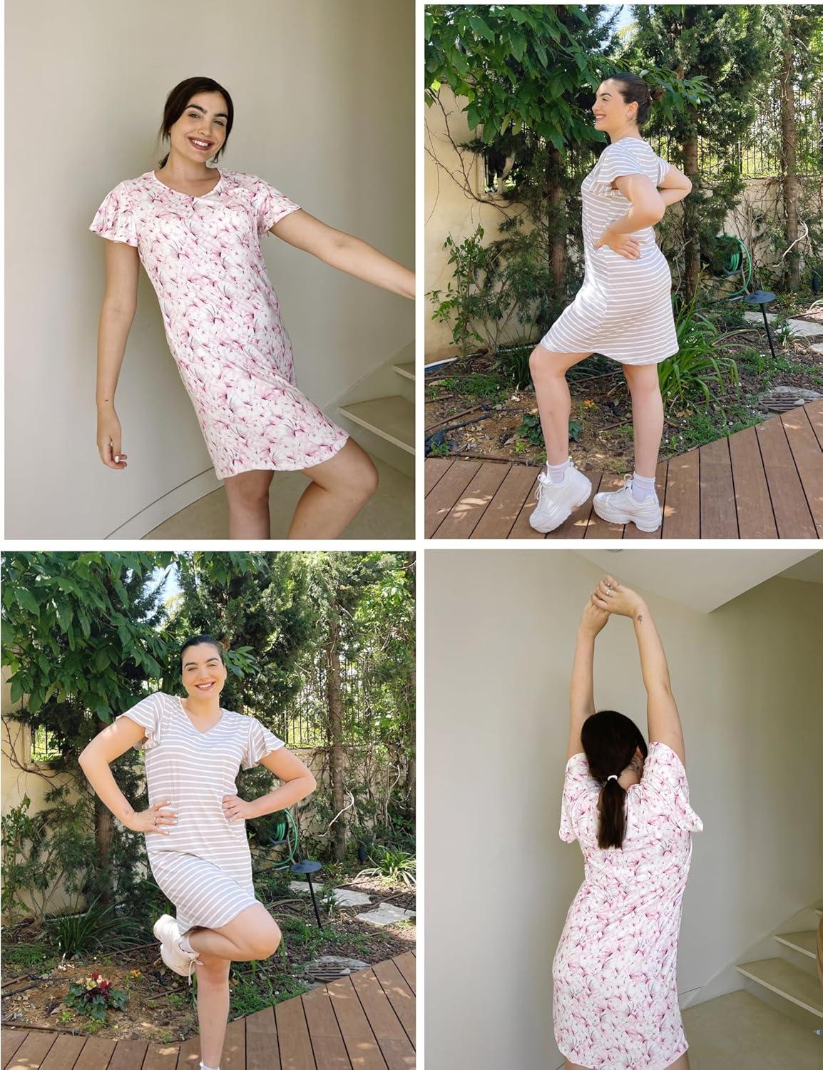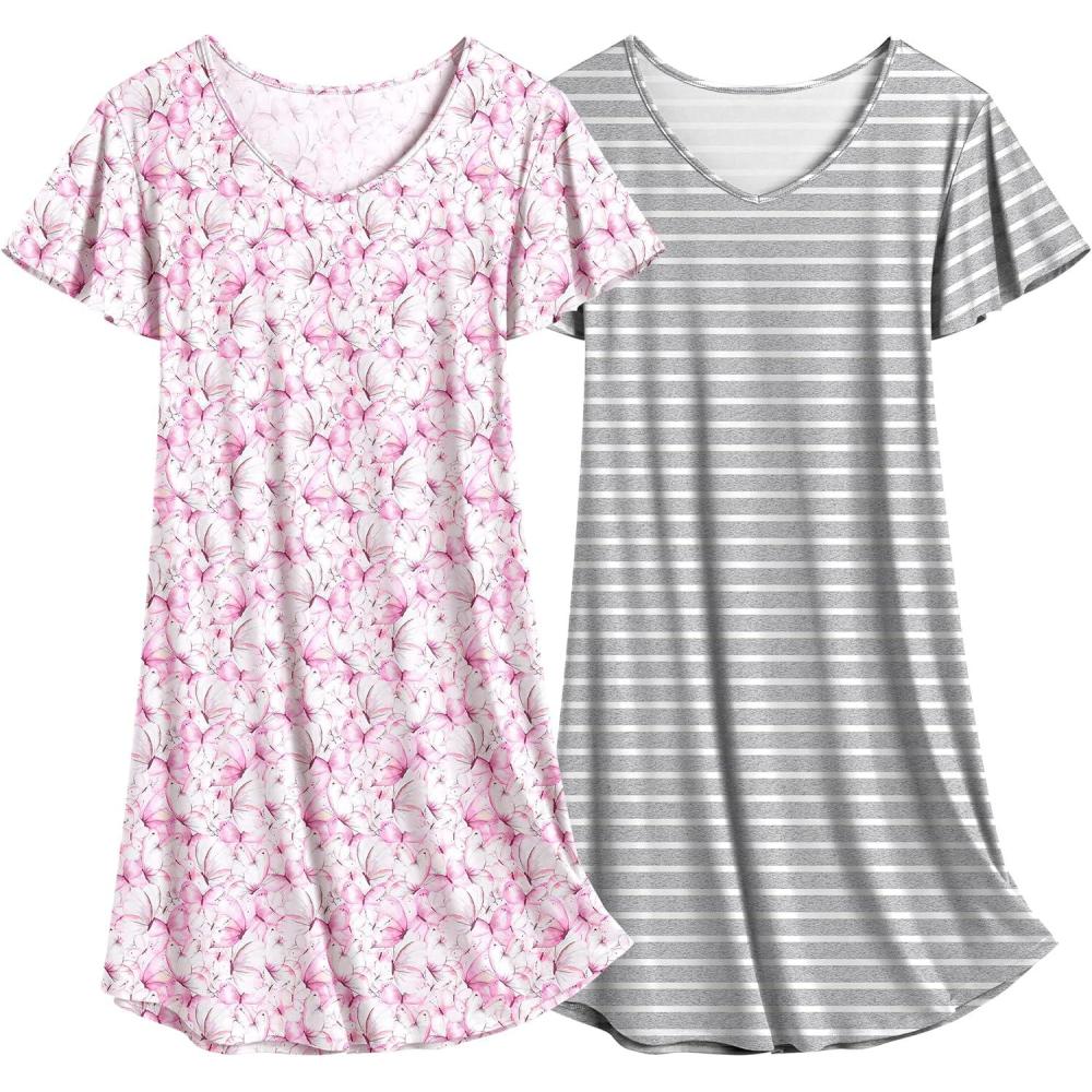 Get the Ekouaer 2 Pack Women’s Nightgown Short Sleeve Nightshirts Comfy Soft Pajama Sleep Dress(Butterfly + Stripe) you want at a discounted price during our markdown sale event.