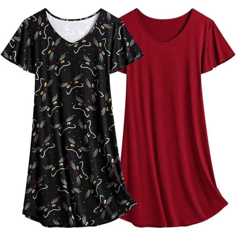 Our holiday sale features the best deals on Ekouaer 2 Pack Women’s Nightgown Short Sleeve Nightshirts Comfy Soft Pajama Sleep Dress(Cat Print + Wine Red) and accessories. Shop now and save!