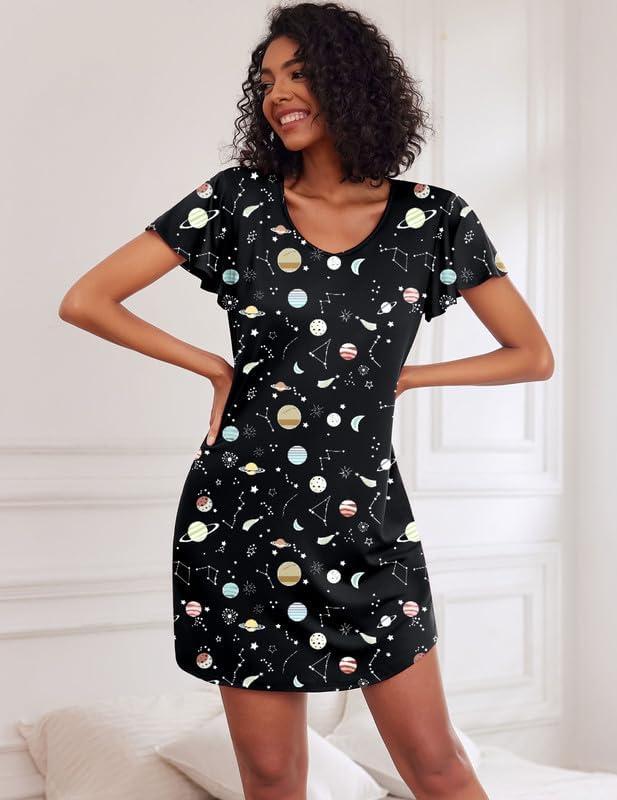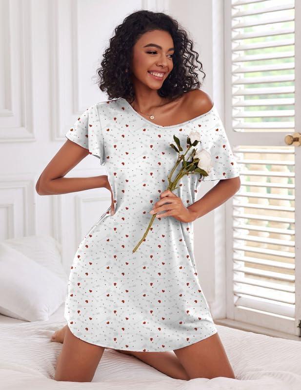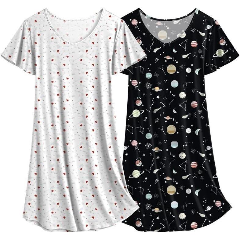 Get the Ekouaer 2 Pack Women’s Nightgown Short Sleeve Nightshirts Comfy Soft Pajama Sleep Dress(Heart+moon Print) you want at a price you can afford with our markdown sale.