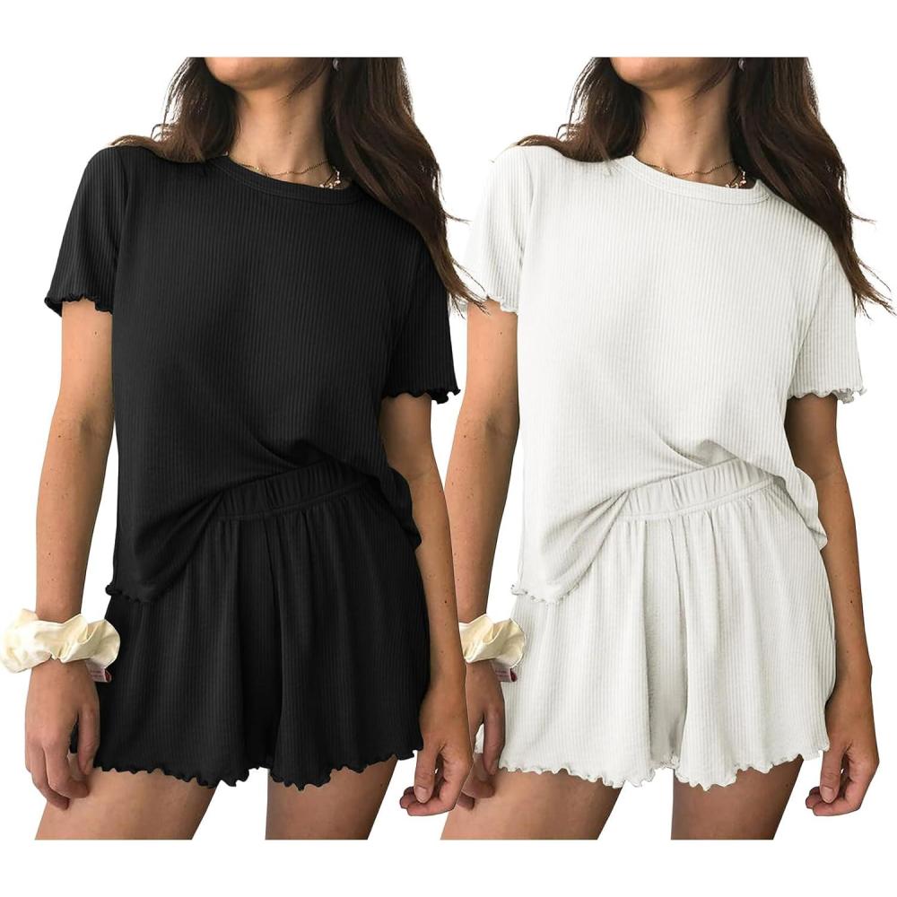 Save up to 40% on Ekouaer 2 Packs Womens Pajama Set Short Sleeve Sleepwear Soft Top and Shorts Pjs Casual Outfits Lounge Set with Pockets(Black/White) styles during our end-of-season sale.