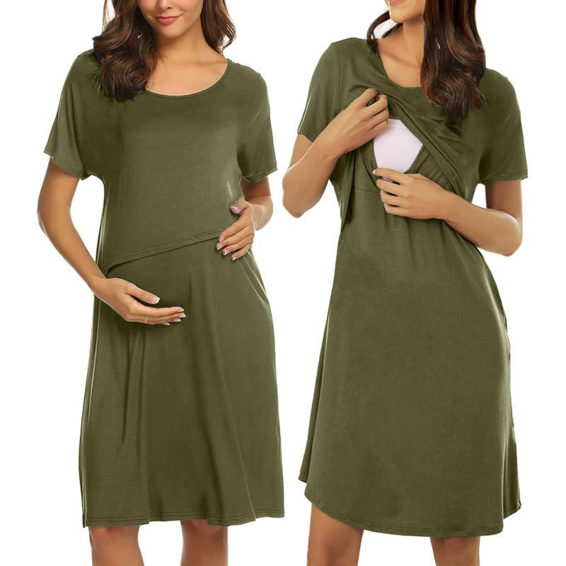 Ekouaer 3 in 1 Maternity Nightgown Short Sleeve Nursing Dress Breastfeeding Sleepwear for Women(Army Green)