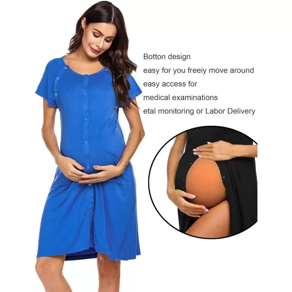 Ekouaer 3 in 1 Nursing Dress Maternity Nightgown LaborDelivery Breastfeeding Birthing Gown with ButtonBlue