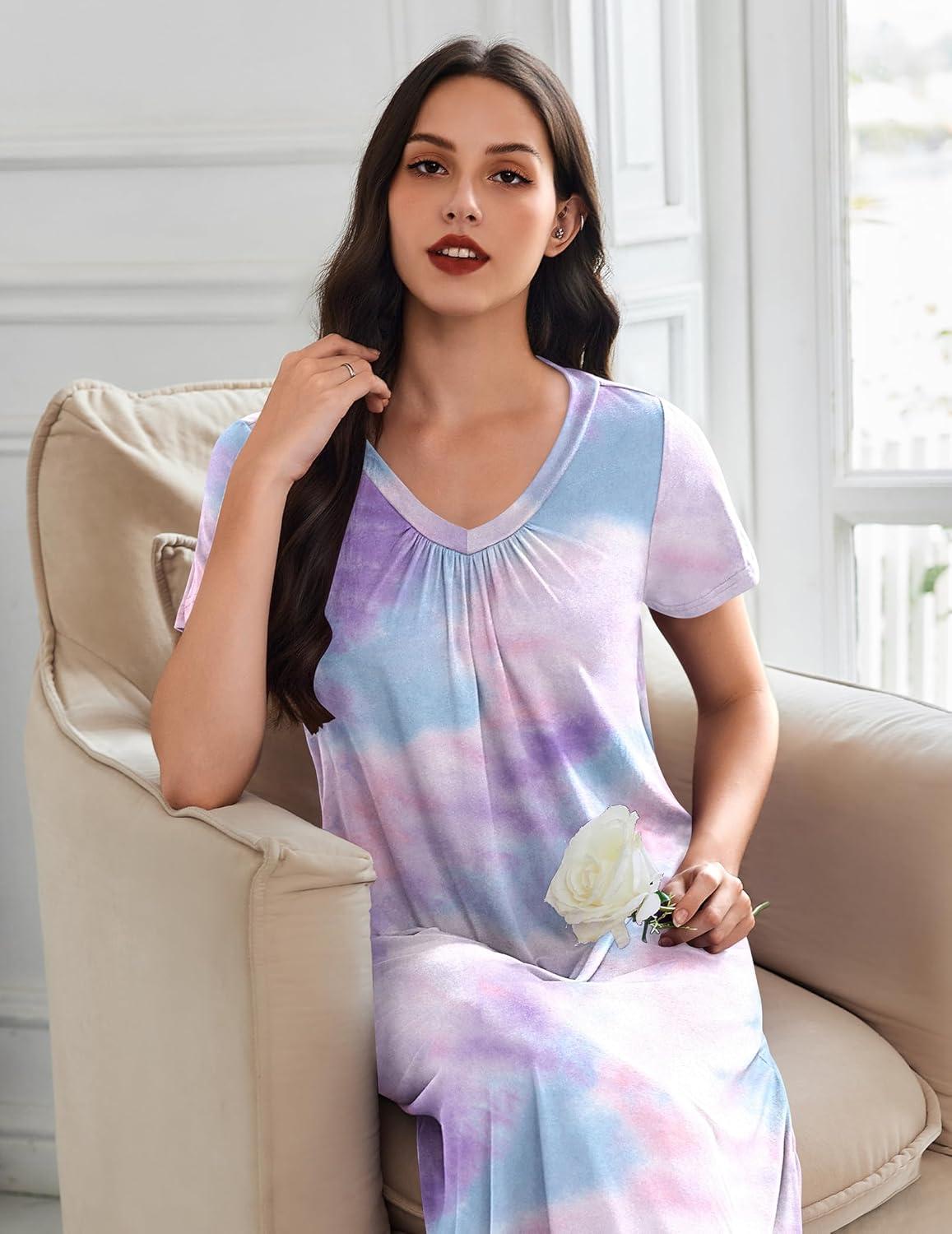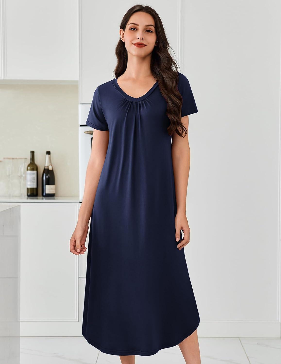 Save up to 40% on Ekouaer 3 Pack Long Nightgowns for Women Plus Size House Dress Short Sleeve Night Gown V Neck Casual Nightshirt M-4XL(Black/Navy Blue/Tie Dye) styles during our end-of-season sale.