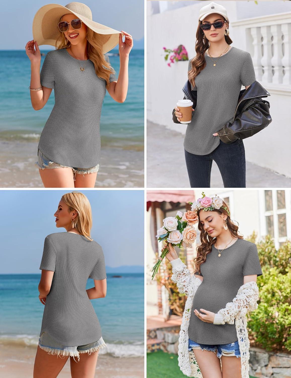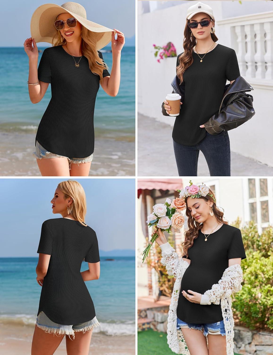 Get the Ekouaer 3 Pack Women Soft Maternity Shirts Ribbed Knit Pregnancy Tops Curved Hem Postpartum Tees Short Sleeve Pregnant Tshirt(Black/Light Grey/Dirty Pink) you want at a discounted price during our markdown sale event.