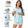 imageEkouaer 3 PCS Maternity Nursing Pajamas Set Postpartum Breastfeeding Short Sleeve Shirts Pregnancy Shorts ampamp Pants Pjs SXXLLight Blue
