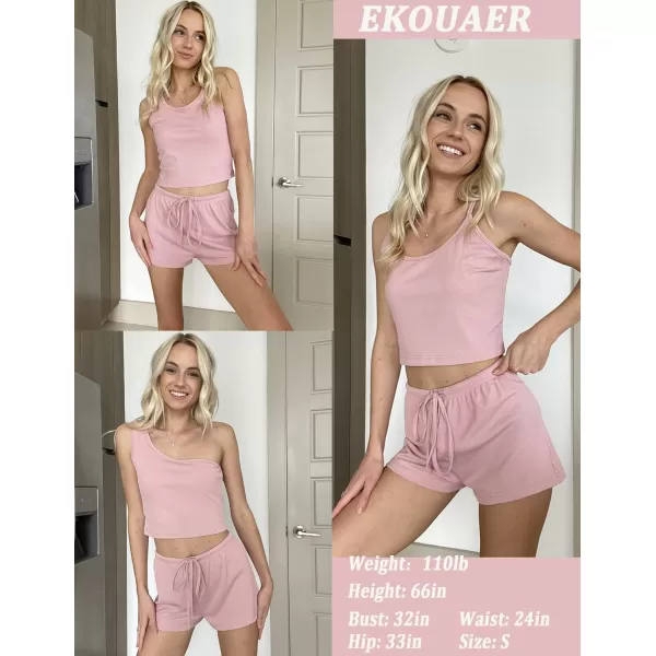 Ekouaer 4 Piece Outfits Crop Tank Top Elastic Waist Shorts Pajama Set Casual Lounge Sets for Daily and Sport Wearing(Pink)