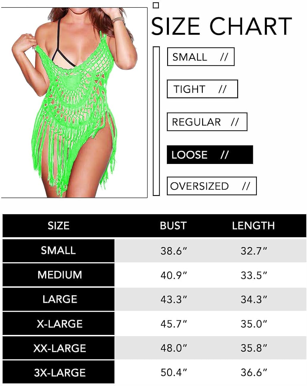 Ekouaer Beach Swimsuit Cover Up Women Crochet Bikini Coverups Summer Pool Swimwear Tassel Dress(Z Neon Green)