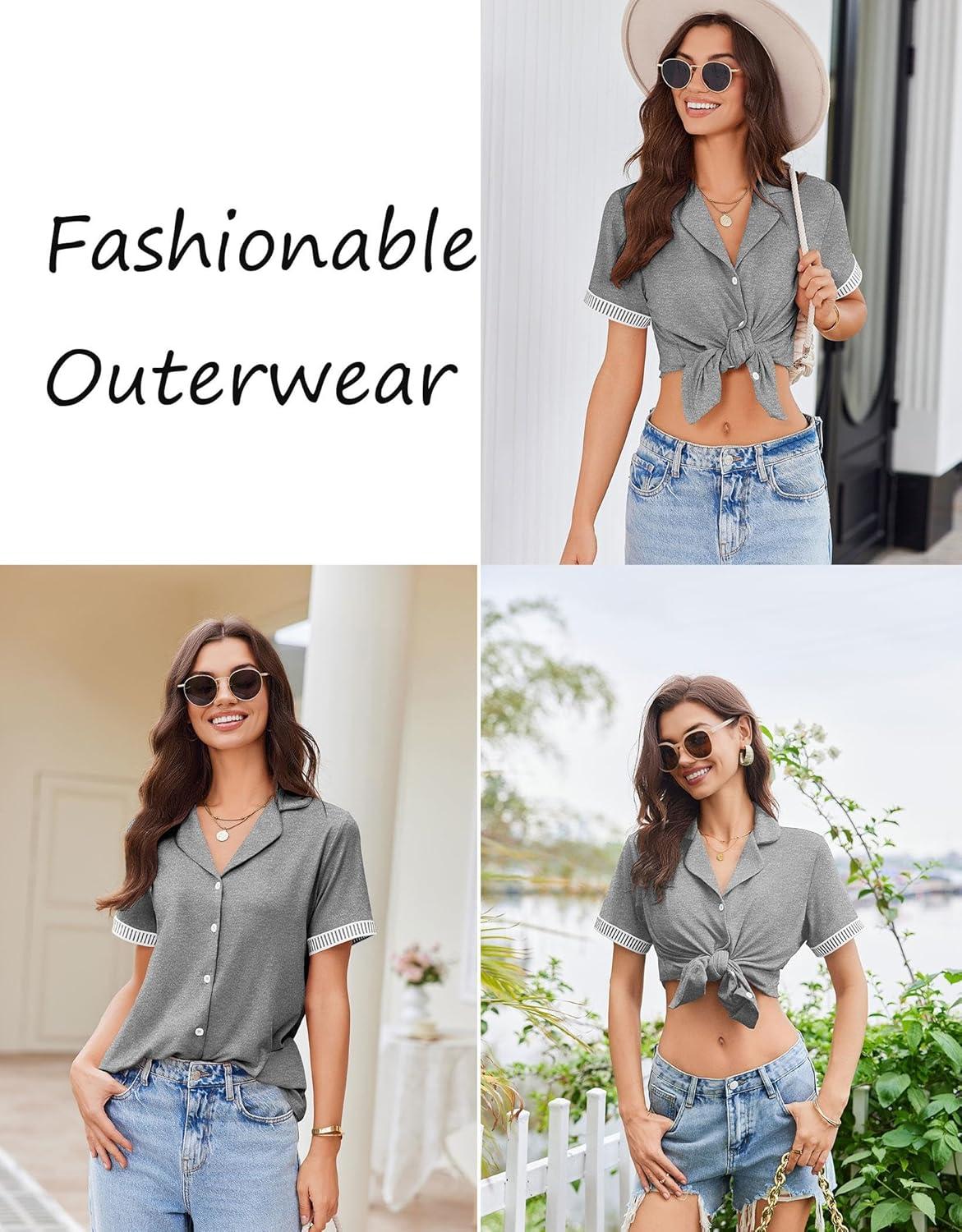 Ekouaer Button Down Pajamas for Women Set Short Sleeve Womens Sleepwear Shorts Set 2 Piece Summer Lounge Sets(Light Gray)