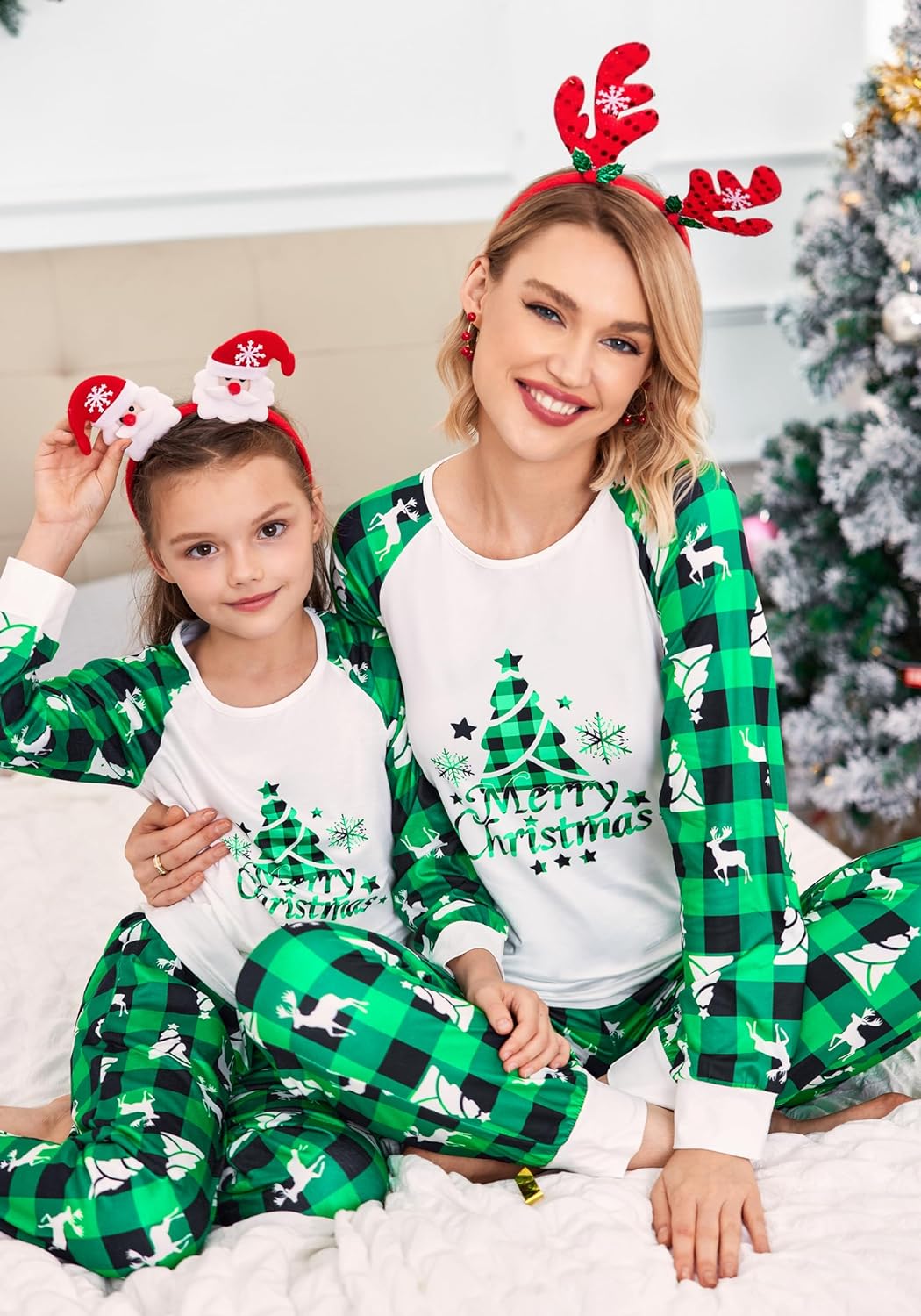 Ekouaer Christmas Pajamas for Family Long Sleeve Pjs Matching Sets with Plaid Pants Soft Sleepwear Loungewear(Women Green Plaid)