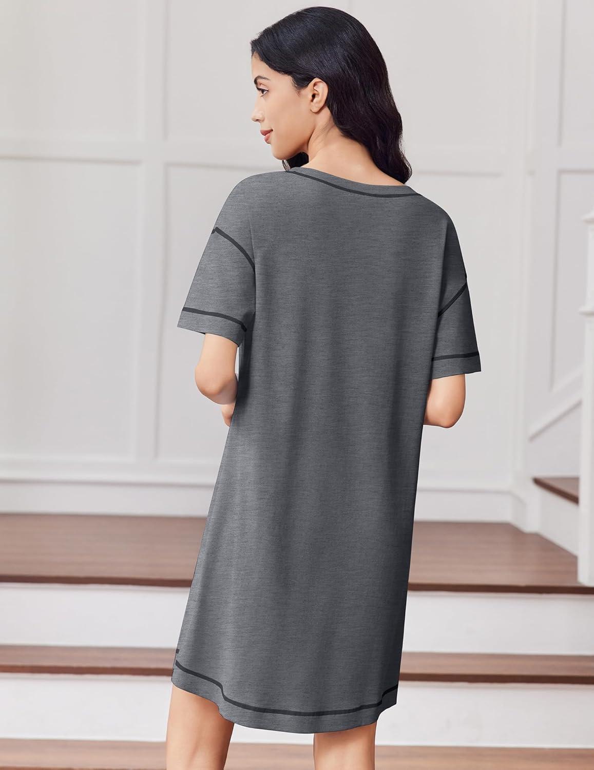 Ekouaer Cotton Nightgowns for Women Oversized Sleepshirt Tshirt Night Gown Short Sleeve Night Shirt Casual Soft Sleepwear(Grey)