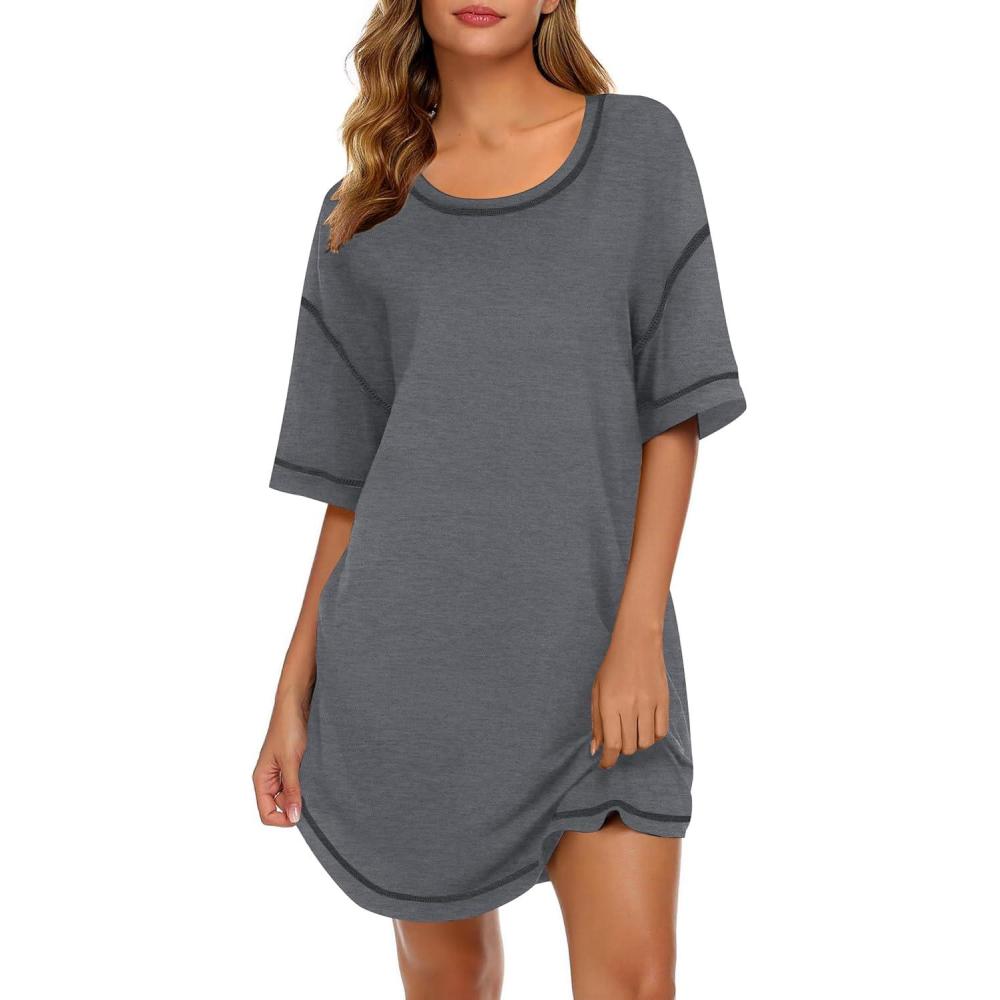 imageEkouaer Cotton Nightgowns for Women Oversized Sleepshirt Tshirt Night Gown Short Sleeve Night Shirt Casual Soft SleepwearGrey