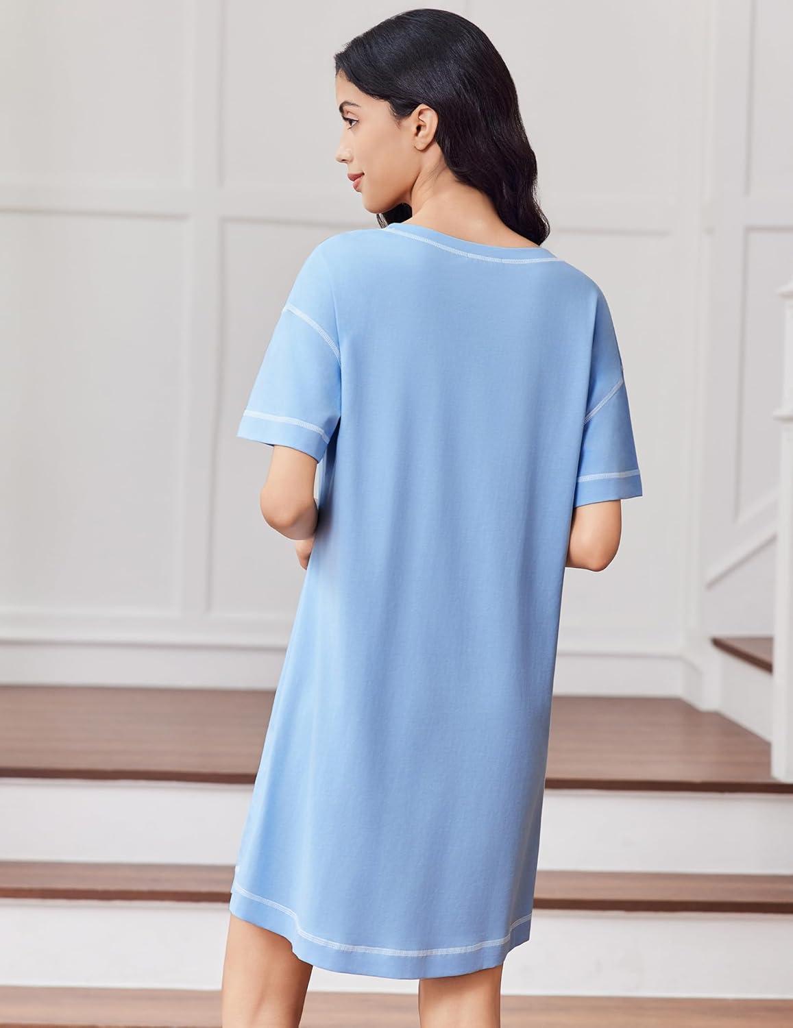 Ekouaer Cotton Nightgowns for Women Oversized Sleepshirt Tshirt Night Gown Short Sleeve Night Shirt Casual Soft Sleepwear(Light Blue)