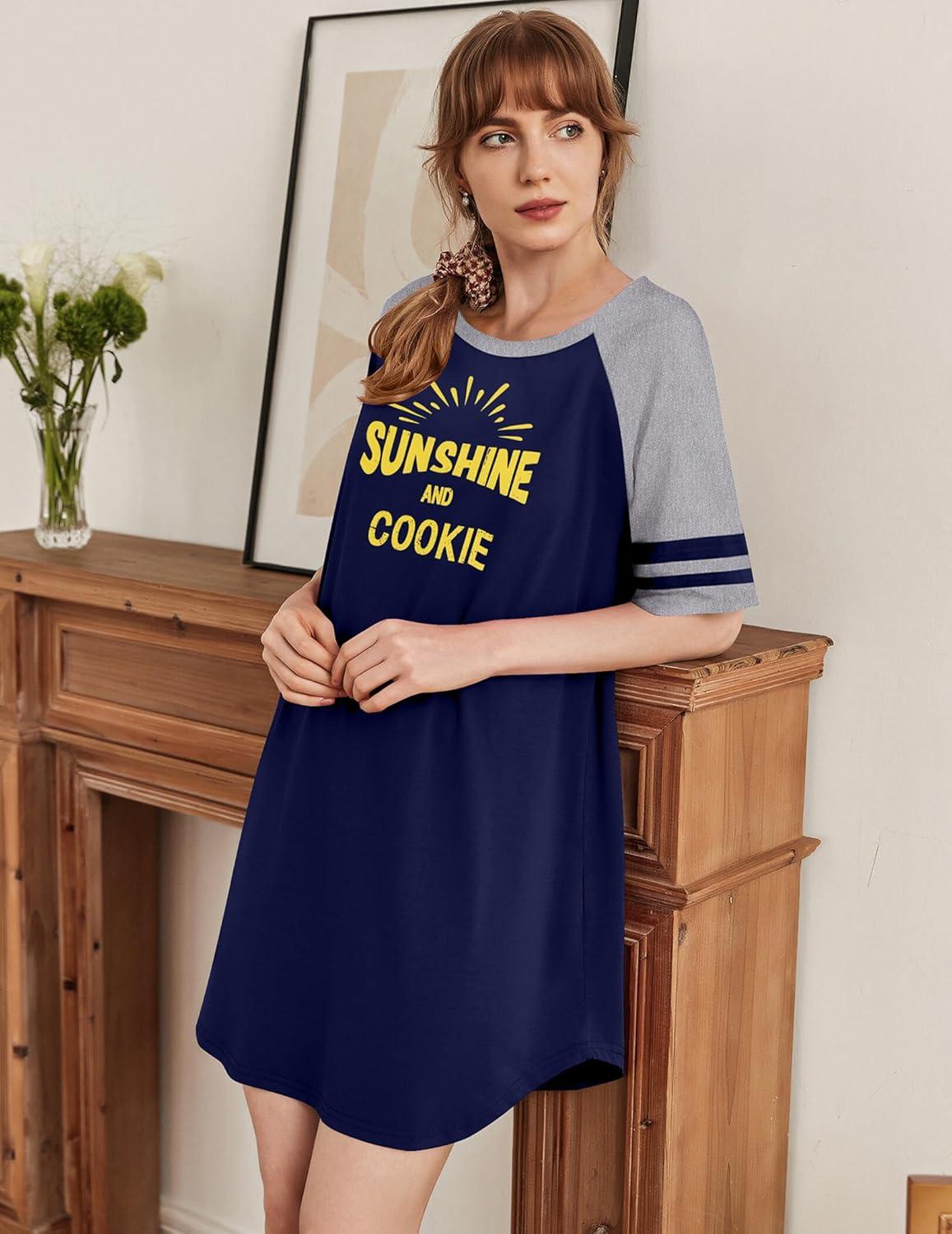 Get your hands on our exclusive Ekouaer Cotton Nightgowns for Women Short Sleeve Sleep Shirts Crew Neck Night Shirts Soft Color Block Night Gown(Sunshine Blue) collection, now at a discounted price.