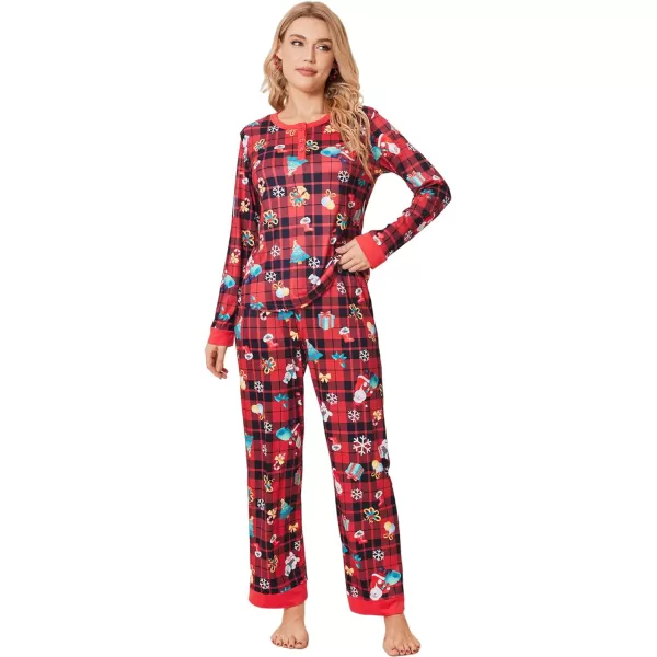 Ekouaer Couples Matching Chritsmas Pajamas Holiday PJ Set Men and Women Sleepwear Long Sleeve Jammies Print Tops and Pants(Pat4_woman)