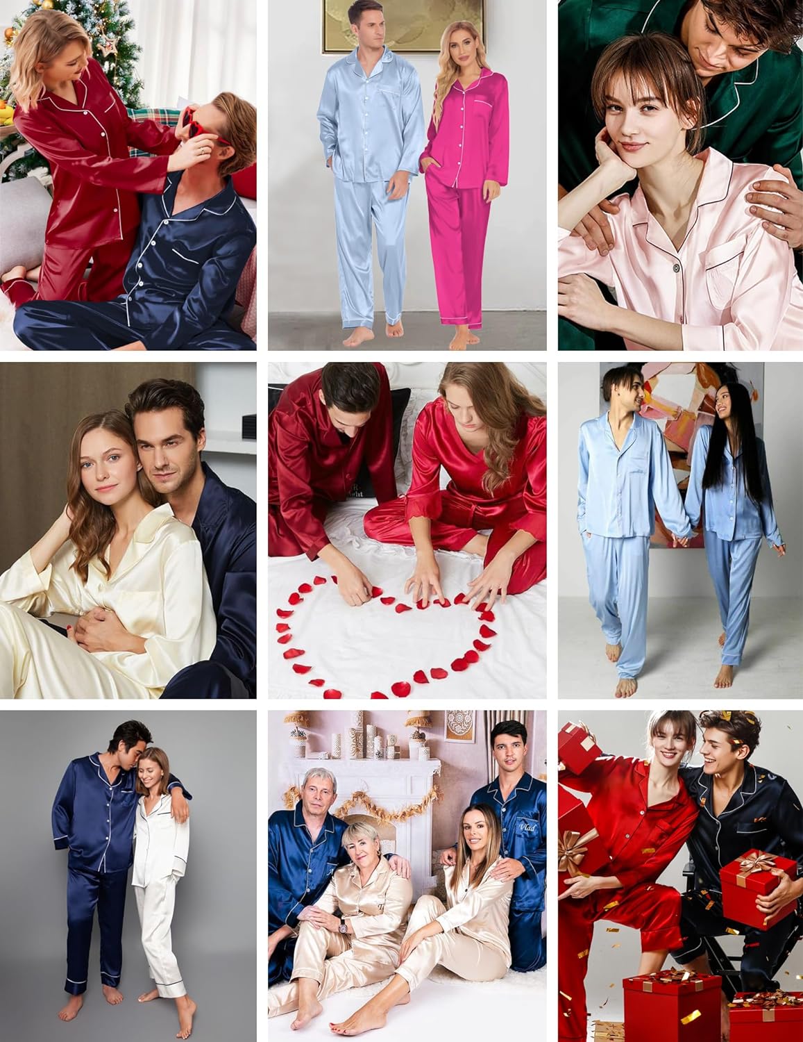 Ekouaer Couples Matching Pajamas Silk Long Sleeve Sleepwear Satin Soft Button Down Loungewear Pjs Set SXXLMen Grey Green