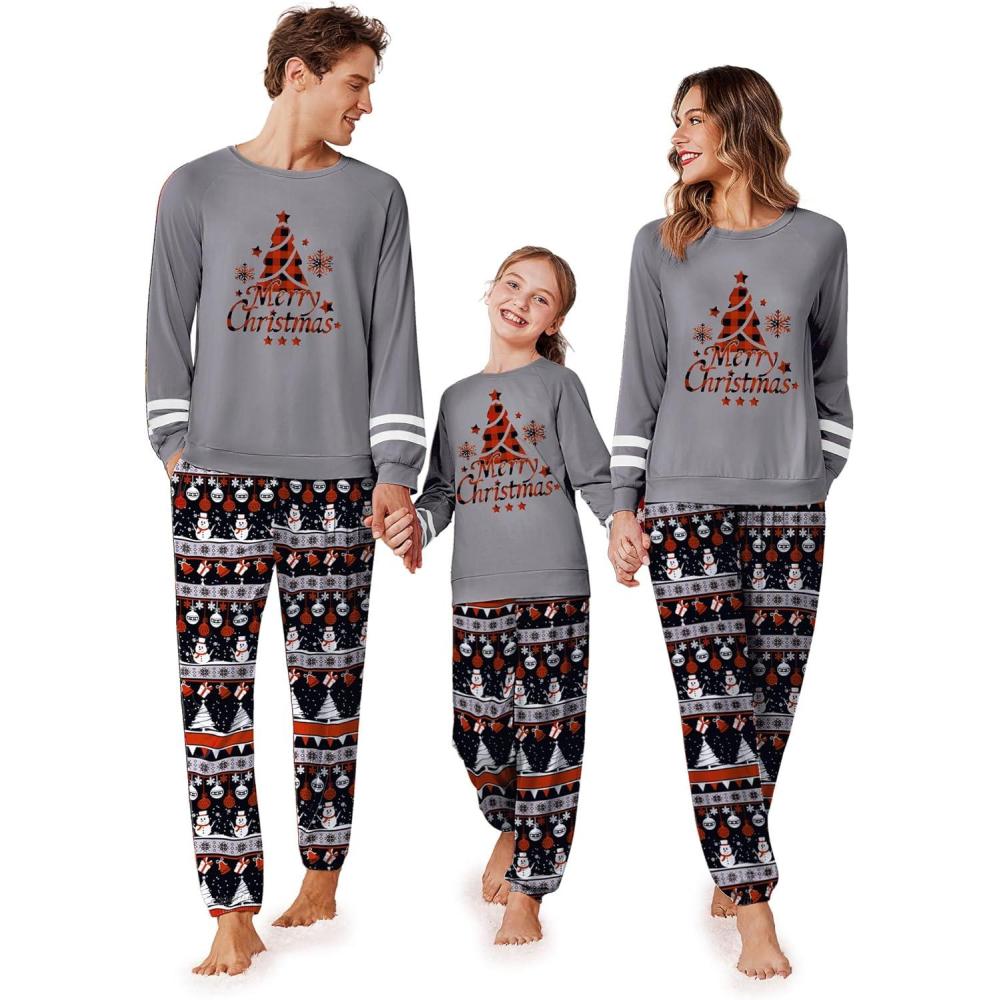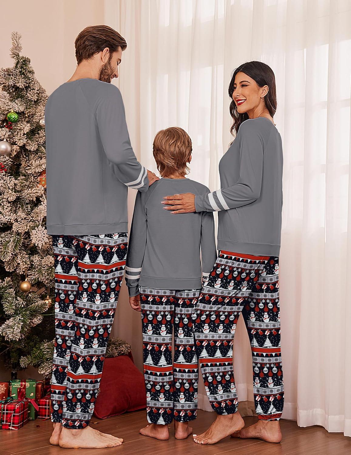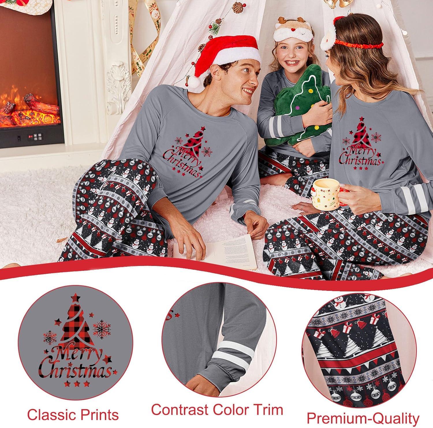 Ekouaer Family Christmas Pajamas Matching Sets Long Sleeve Couple Pjs Holiday Sleepwear Soft Loungewear with Pockets(Gray-christmas Tree)