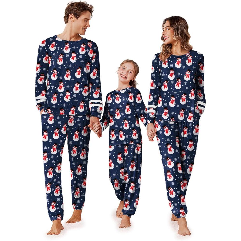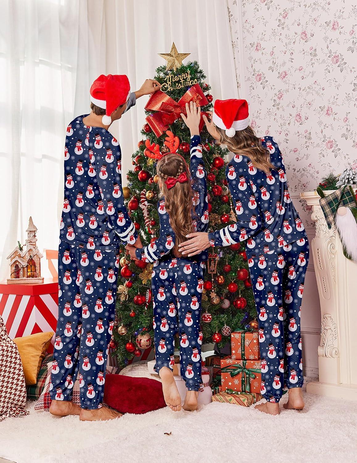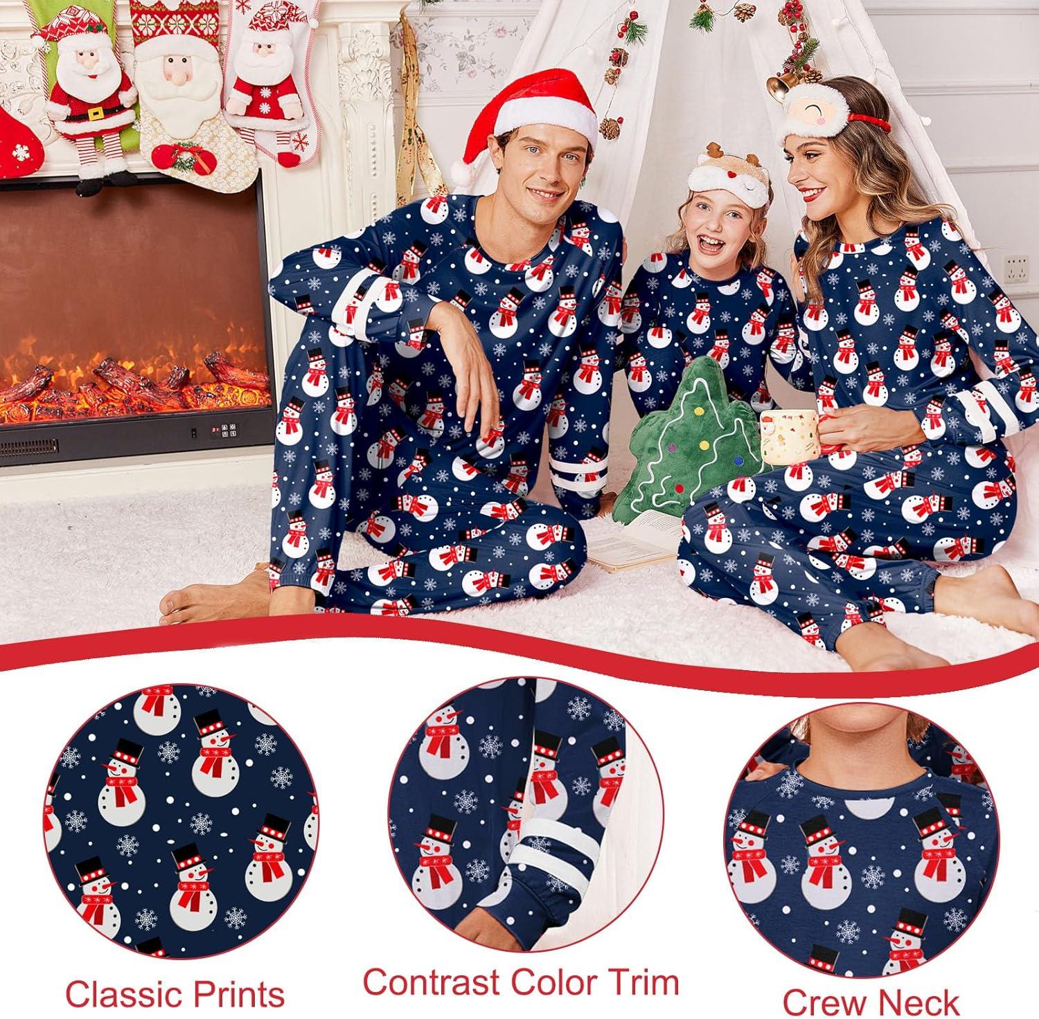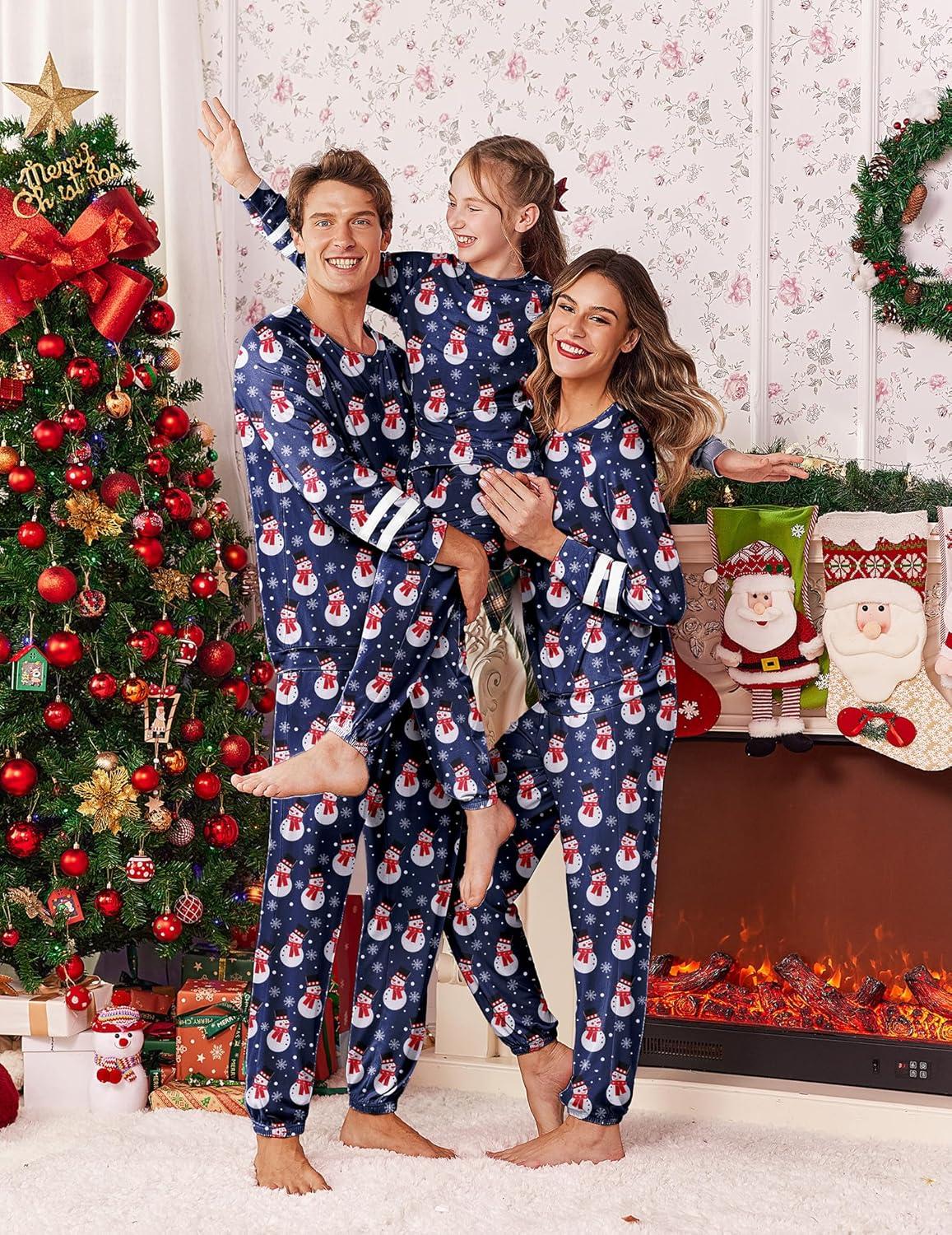 Ekouaer Family Christmas Pajamas Matching Sets Long Sleeve Couple Pjs Holiday Sleepwear Soft Loungewear with Pockets(Navy-snowman)