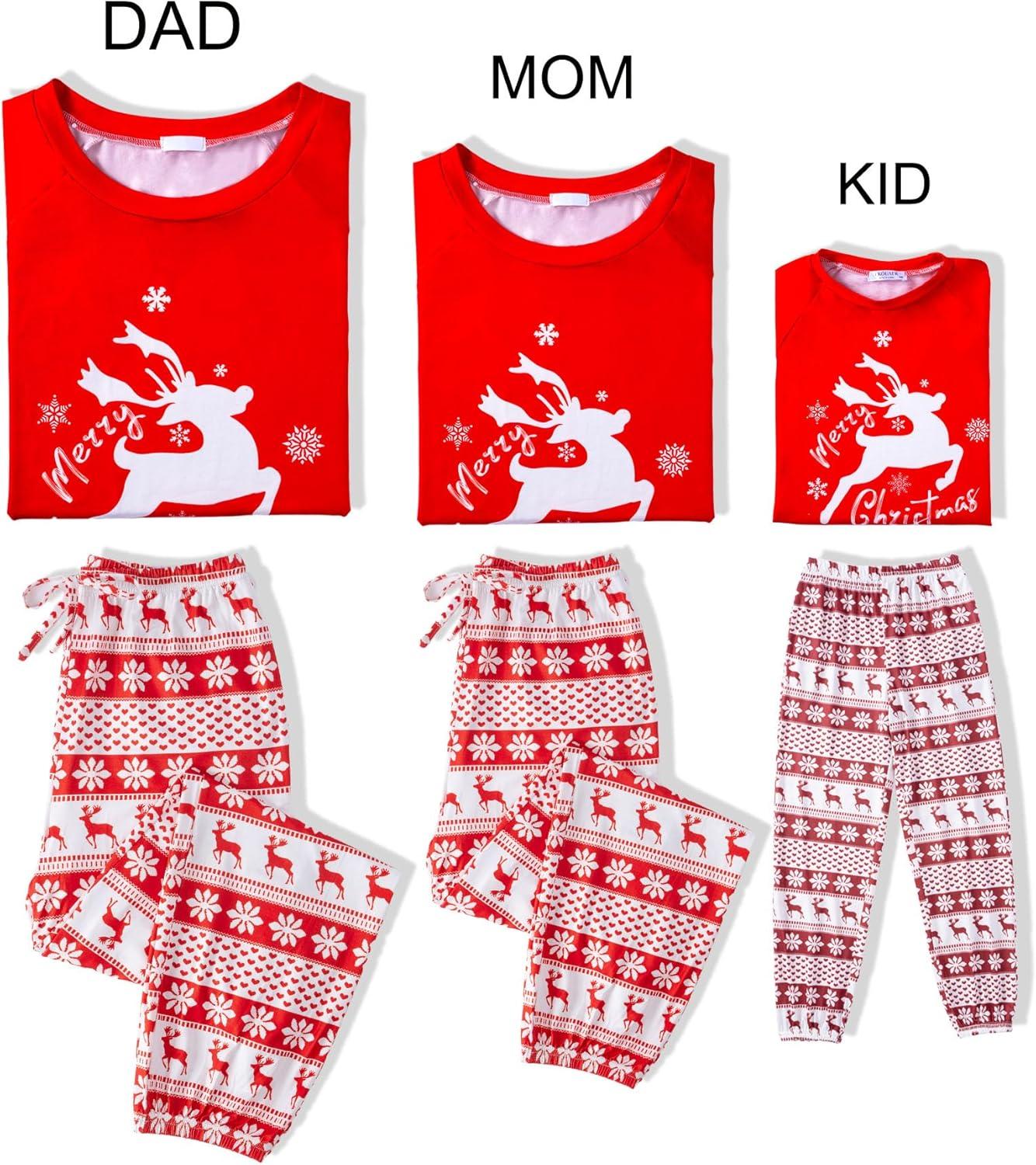 Ekouaer Family Christmas Pajamas Matching Sets Long Sleeve Couple Pjs Holiday Sleepwear Soft Loungewear with Pockets(Red-elk)