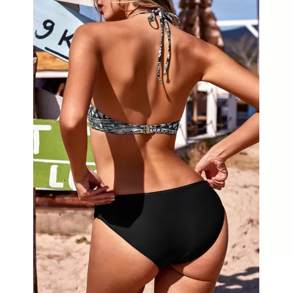 Ekouaer High Neck Halter Bikini Top Floral Swimsuits Two Piece Bathing Suits Triangle Bottoms for Women Teen Juniors XSXXLBlack Tribal