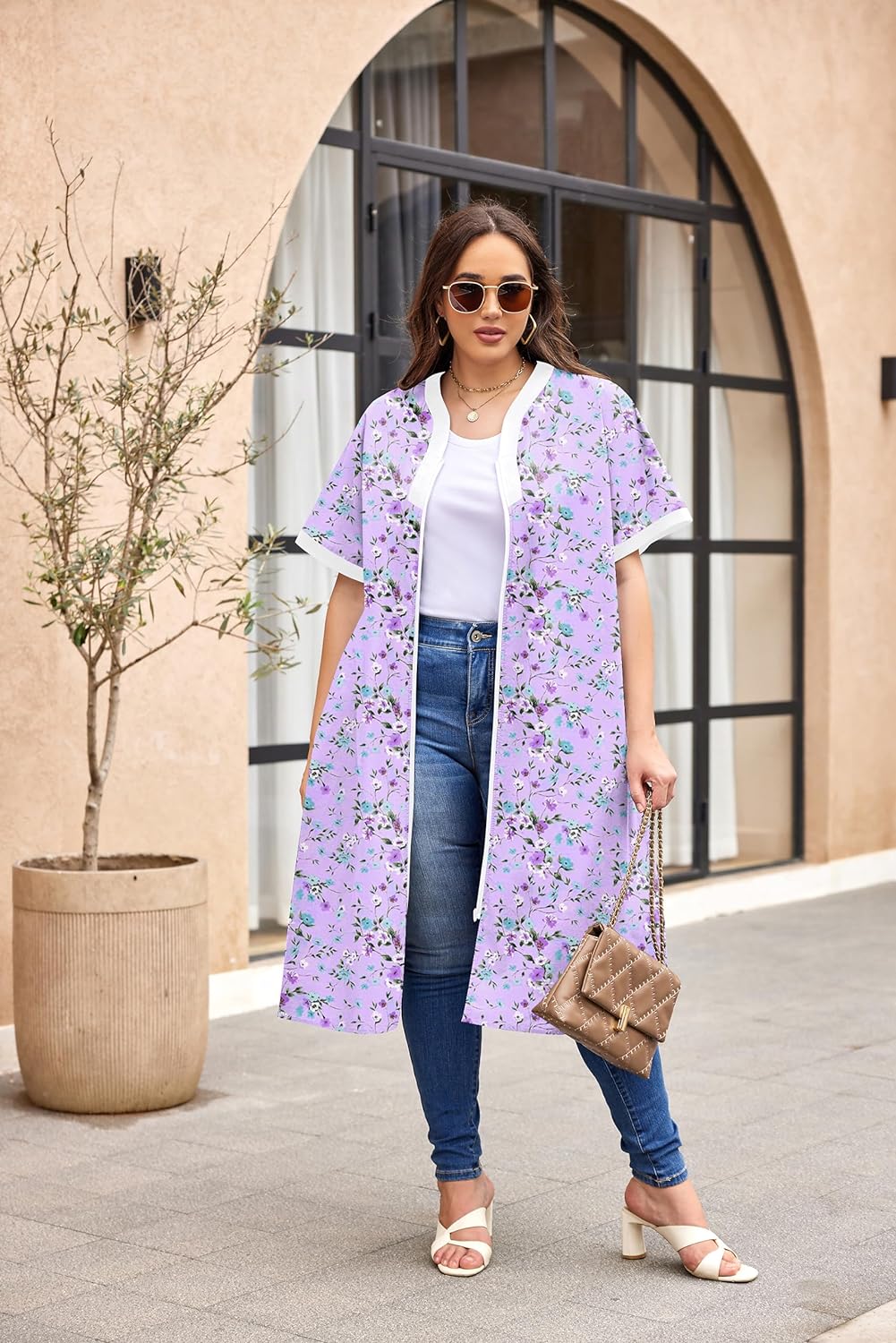 Ekouaer Housecoat Women Zipper Front Duster Robe Short Sleeve Lounger Housedress Pockets Nightgown Casual Nights S-XXXL(Pat19)