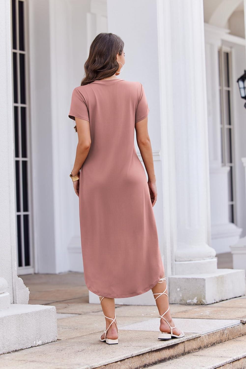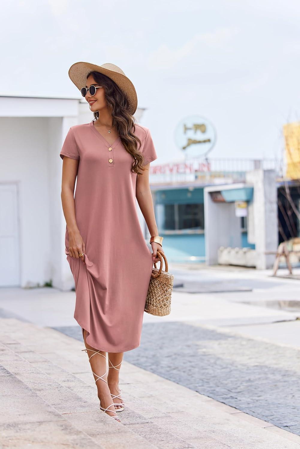 imageEkouaer Long Nightgowns for Women Button Night Gowns Short Sleeve Sleepwear Full Length Sleep Shirts With Pockets S3XLGray Purple Red