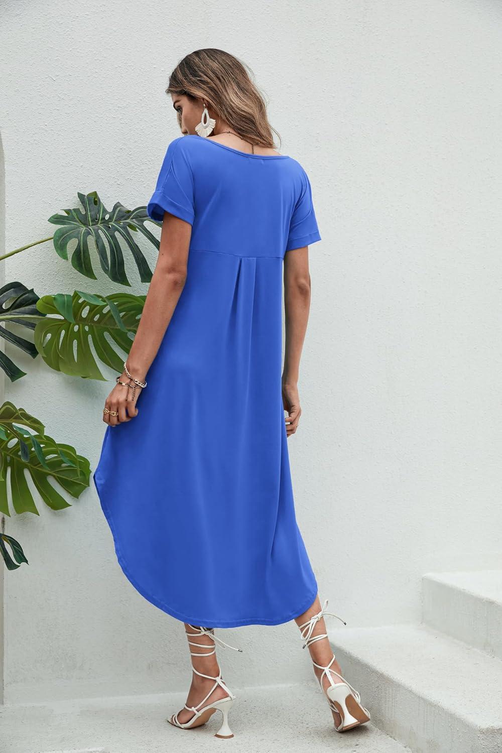 Ekouaer Long Nightgowns for Women Short Sleeve House Dress with Pockets V Neck Sleepshirts Side Split Sleepwear S-4XL(Snorkel Blue)