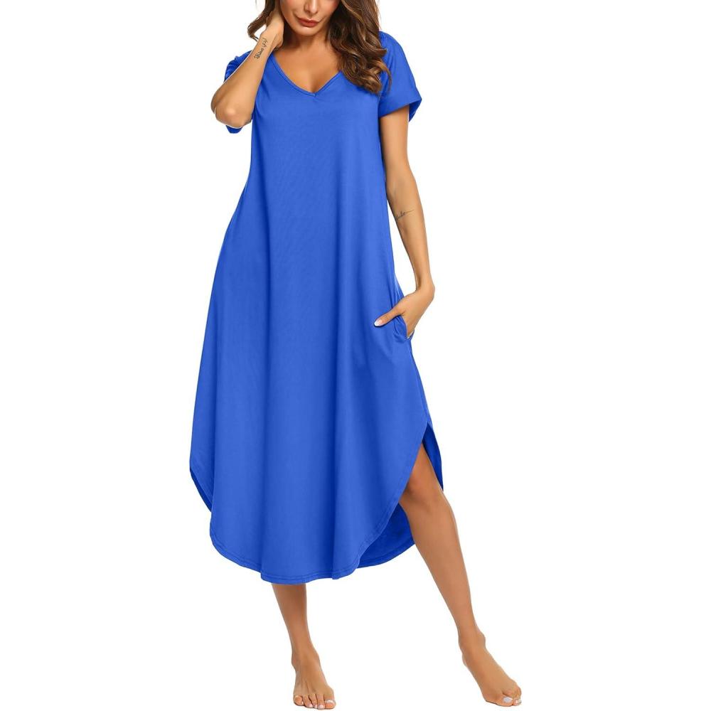 Get the Ekouaer Long Nightgowns for Women Short Sleeve House Dress with Pockets V Neck Sleepshirts Side Split Sleepwear S-4XL(Snorkel Blue) you want at a price you can afford with our markdown sale.