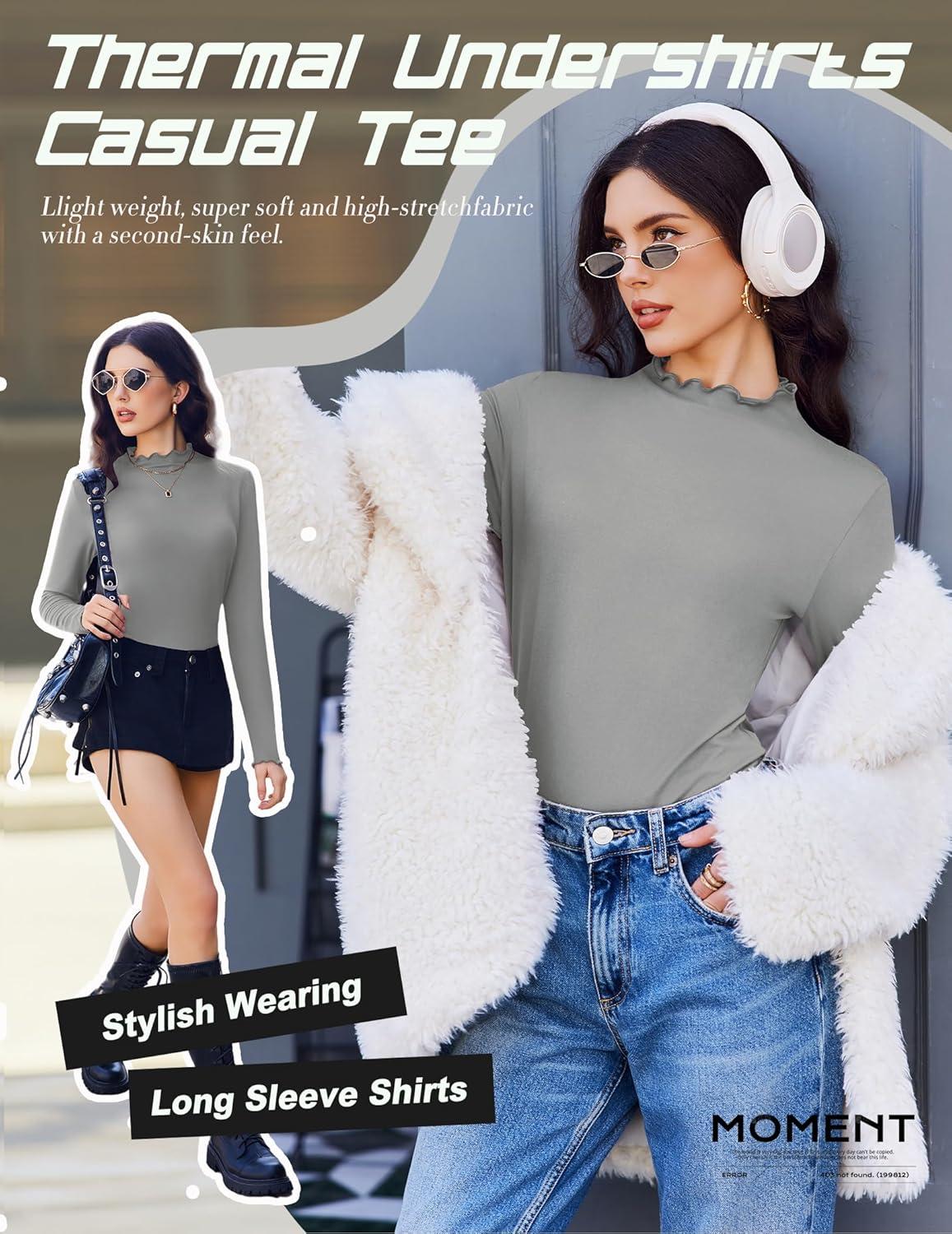 Get the Ekouaer Long Sleeve Shirts for Women 3 Pack Mock Neck Thermal Tops Basic Undershirt Casual Basic Tee(Black/White/Light Grey) you want at a price you can afford with our markdown sale.