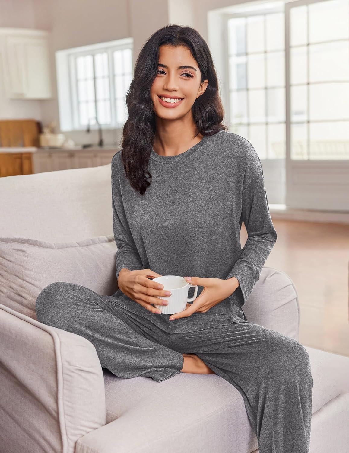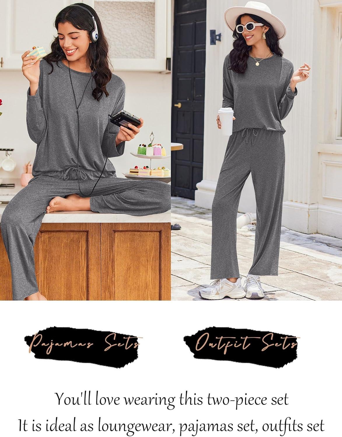 Ekouaer Lounge Sets for Women Long Sleeve Pajamas Fall Loungewear Soft Comfy Pjs Two Piece Travel Outfits Set(Dark Gray)