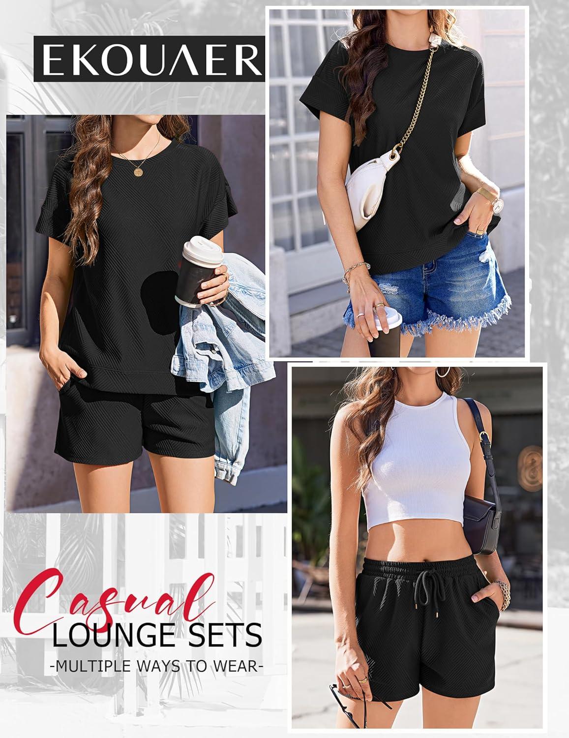 Be the first to review “Ekouaer Lounge Sets for Women Textured 2 Piece Shorts Set Cozy Summer Outfits Casual Loungewear Short Sleeve Sweatsuits(Black)” Cancel reply