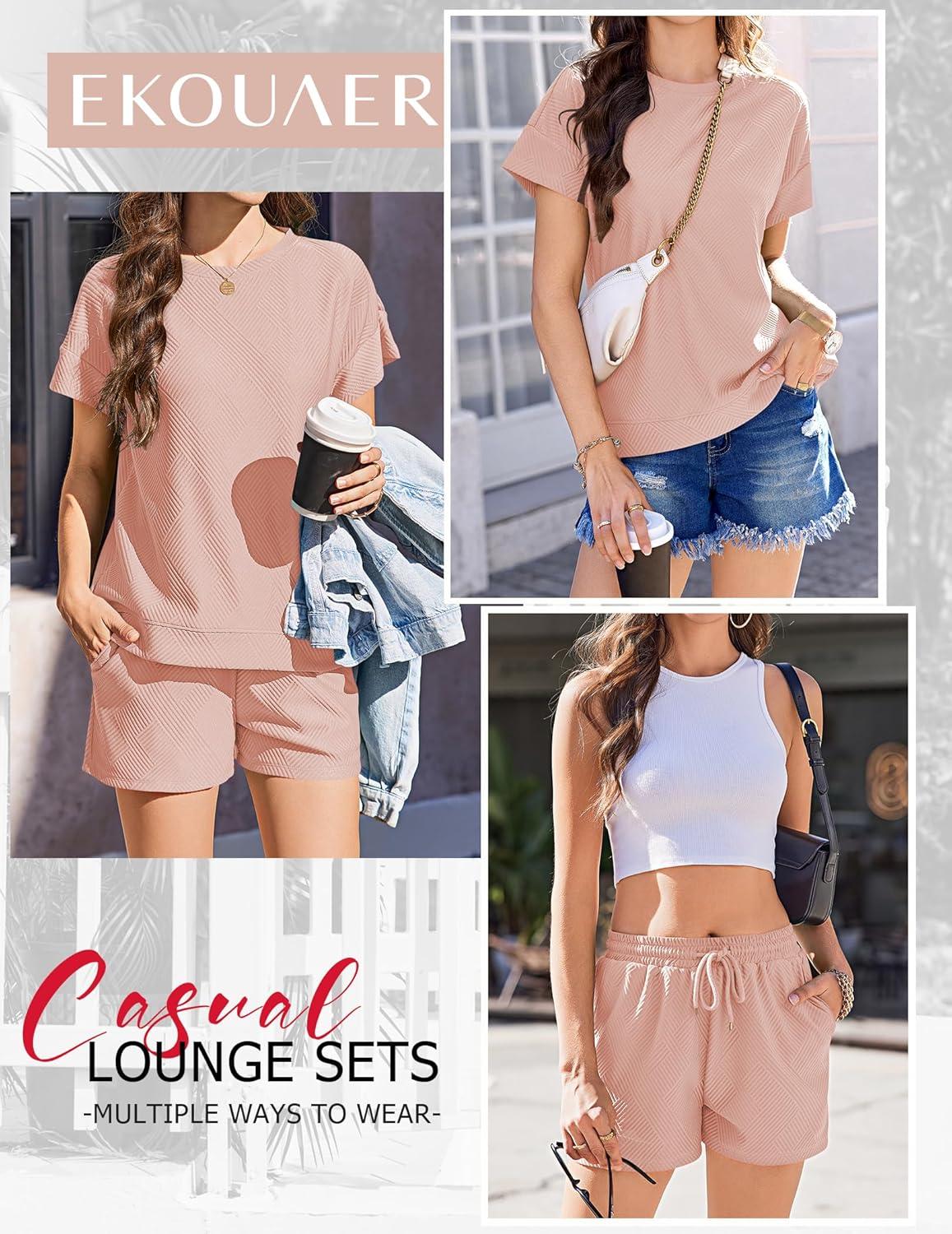 Don’t miss out on our limited-time offer: get a free {accessory} with your purchase of Ekouaer Lounge Sets for Women Textured 2 Piece Shorts Set Cozy Summer Outfits Casual Loungewear Short Sleeve Sweatsuits(Pink).