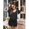 imageEkouaer Maternity Sets 2 Piece Outfits Flowing Short Sleeve V Neck Postpartum Pregnancy Pajamas ClothesBlack