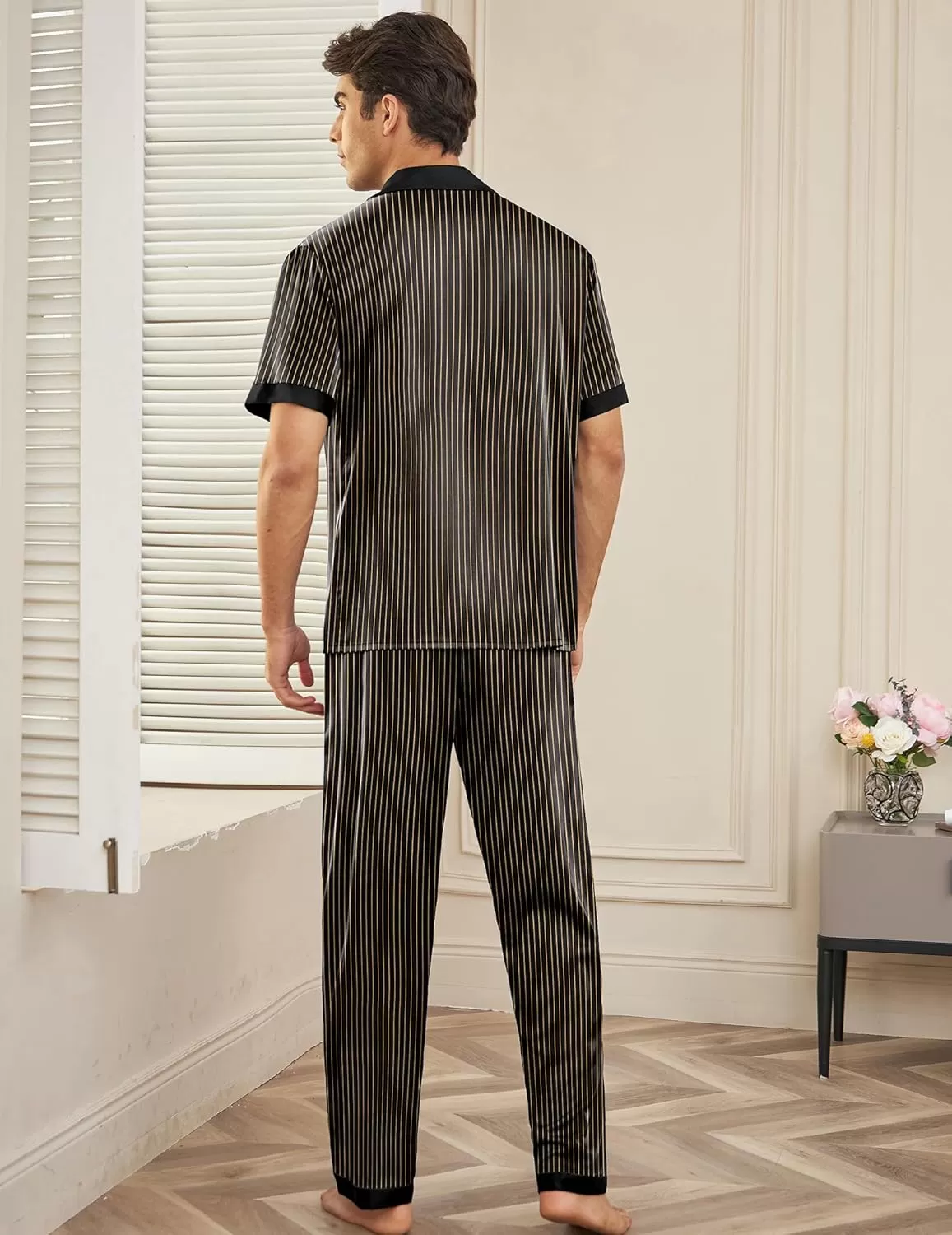Be the first to review “Ekouaer Men Satin Silk Pajamas Set 2 Piece Button Down Sleepwear Long Pants Loungewear with Pockets(Black Gold Stripe)” Cancel reply