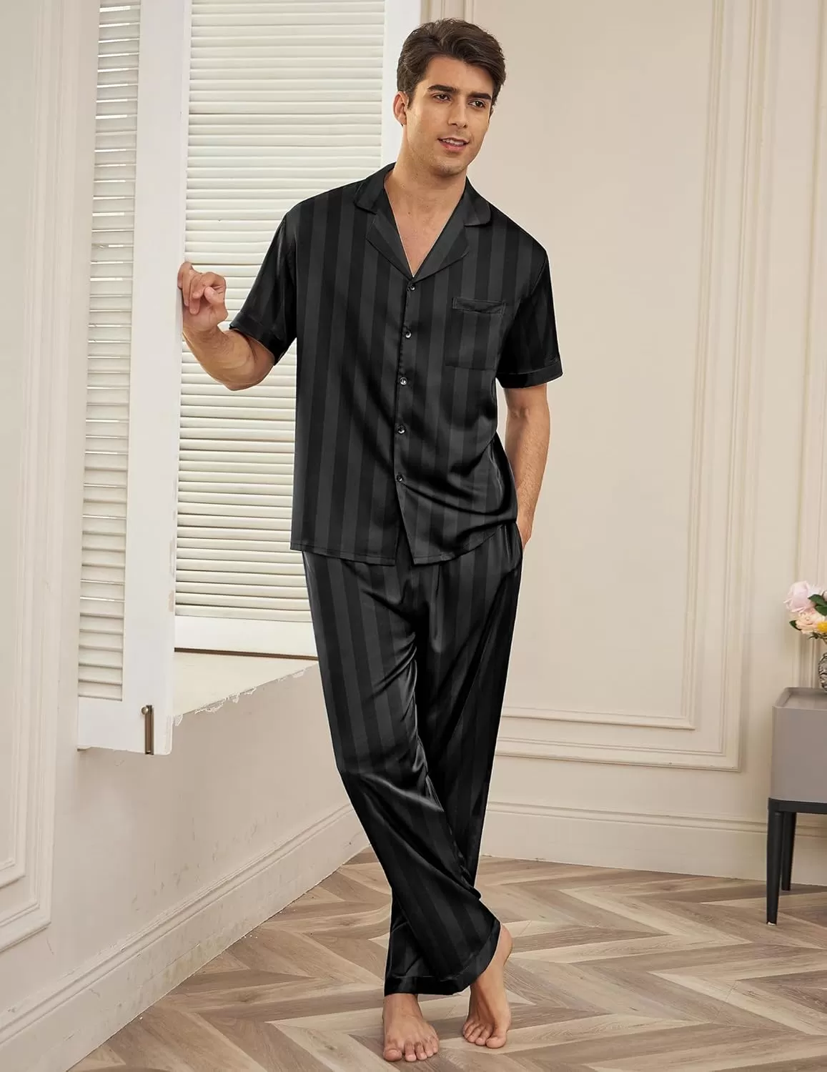 Be the first to review “Ekouaer Men Satin Silk Pajamas Set 2 Piece Button Down Sleepwear Long Pants Loungewear with Pockets(Black Stripe)” Cancel reply