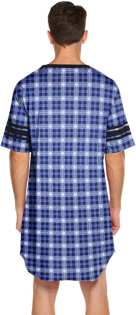 Ekouaer Men's Nightshirt Comfy Nightwear Big&Tall V Neck Short Sleeve Soft Loose Pajama Sleep Shirt(Pattern 5)