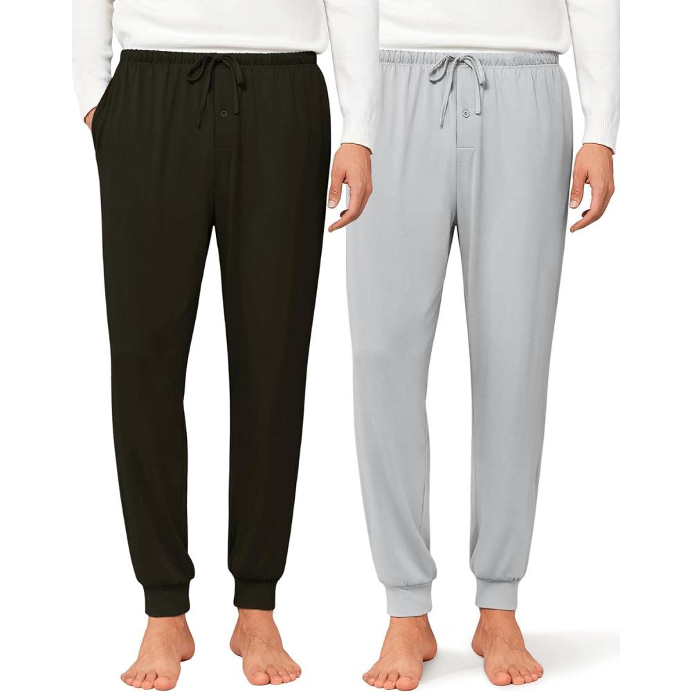 Ekouaer Men’s Pajama Pants, Lightweight Loungewear, Comfy Jogger Sleep Pant Long Pj Bottoms with Drawstring & Pockets(2 Pack-black+light Grey)