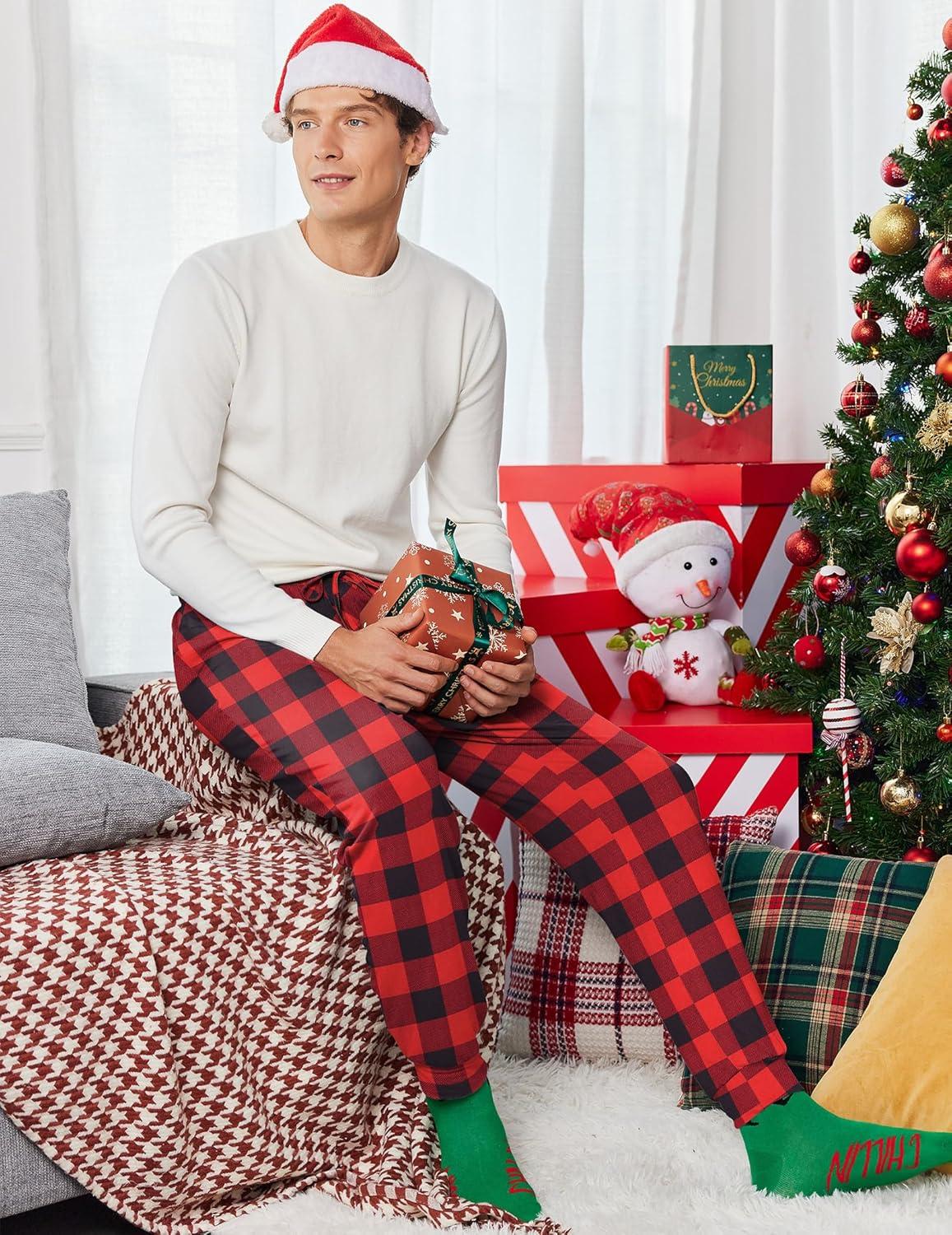 Ekouaer Men’s Pajama Pants, Lightweight Loungewear, Comfy Jogger Sleep Pant Long Pj Bottoms with Drawstring & Pockets(Black Christmas)