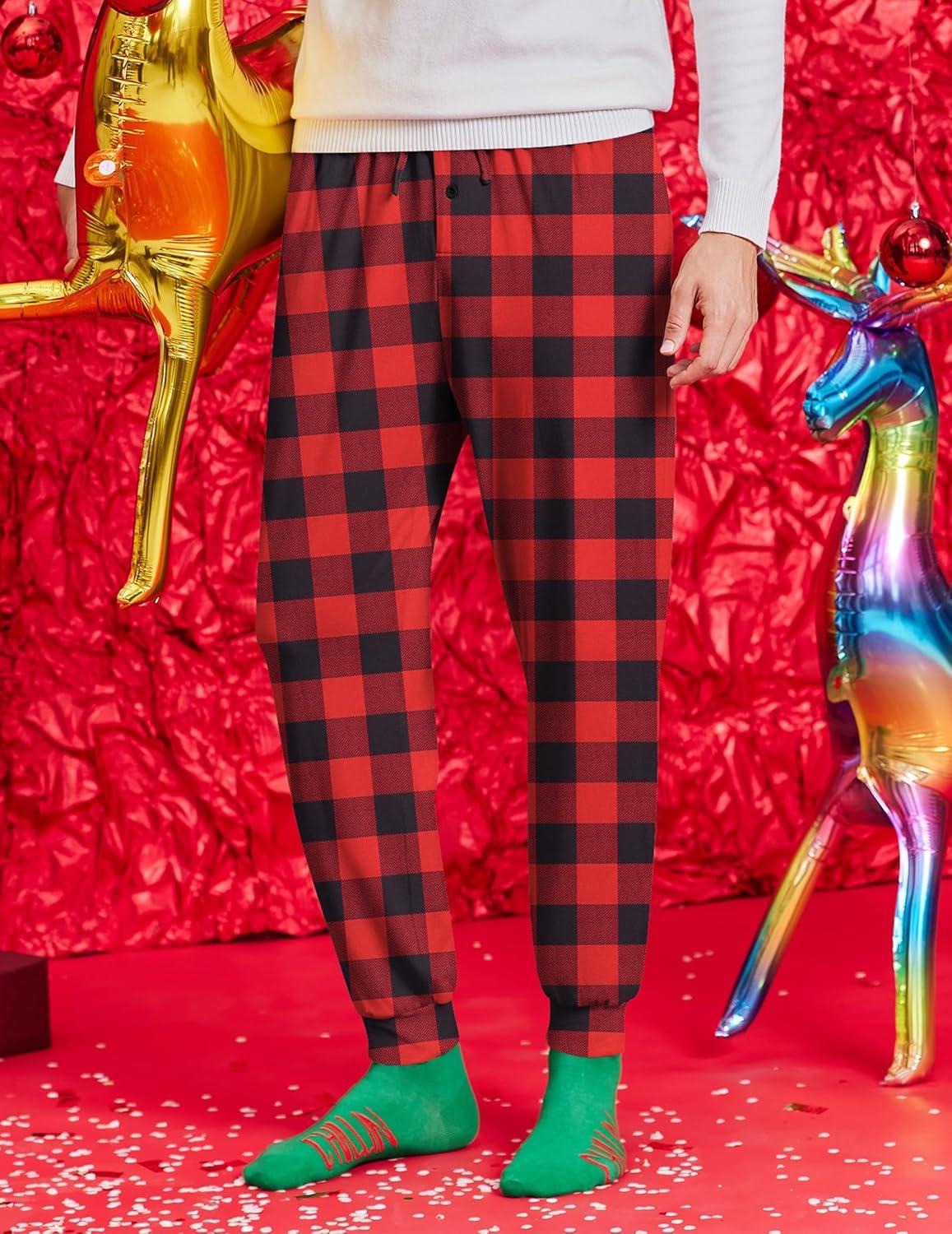 Ekouaer Men’s Pajama Pants, Lightweight Loungewear, Comfy Jogger Sleep Pant Long Pj Bottoms with Drawstring & Pockets(Black Plaid+red Plaid)