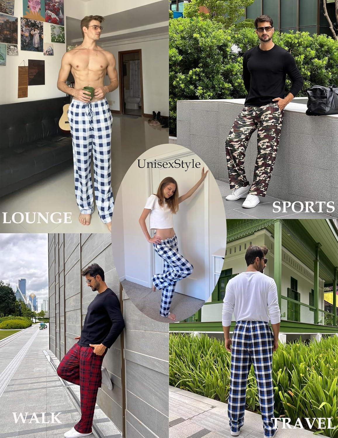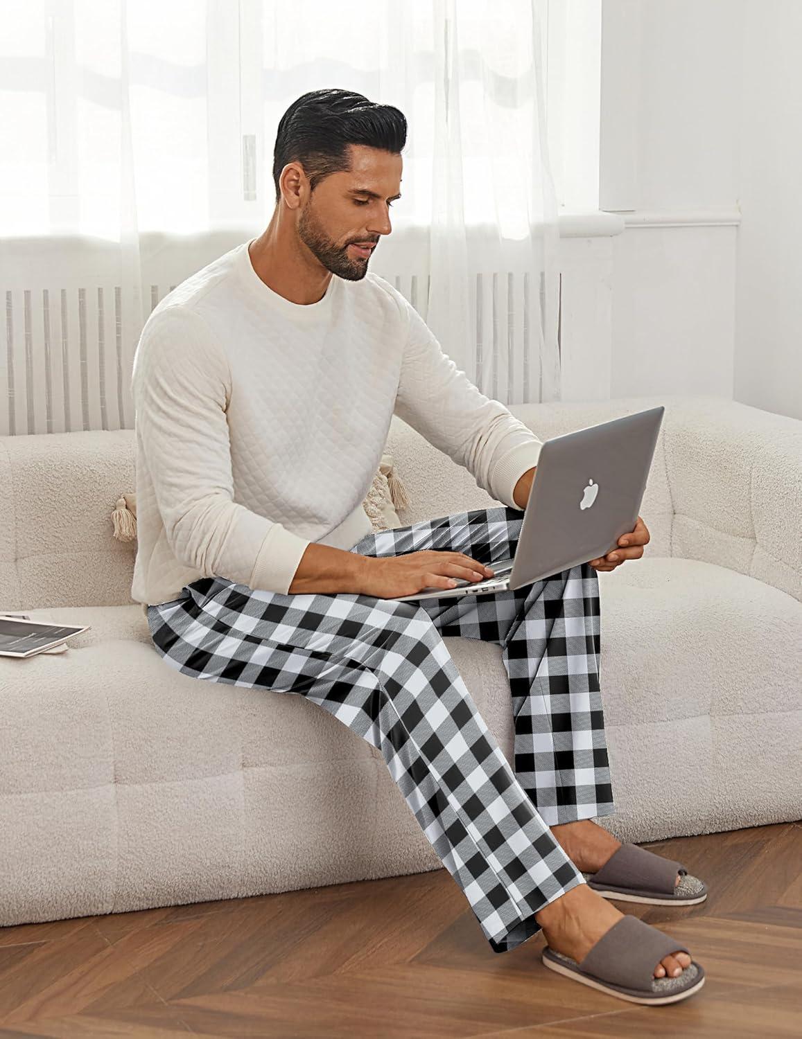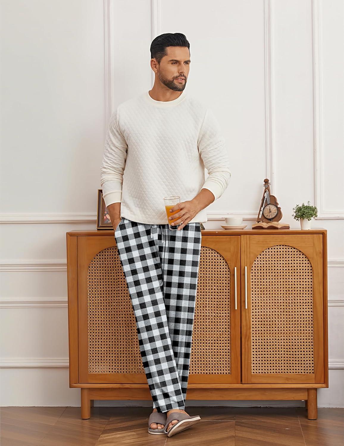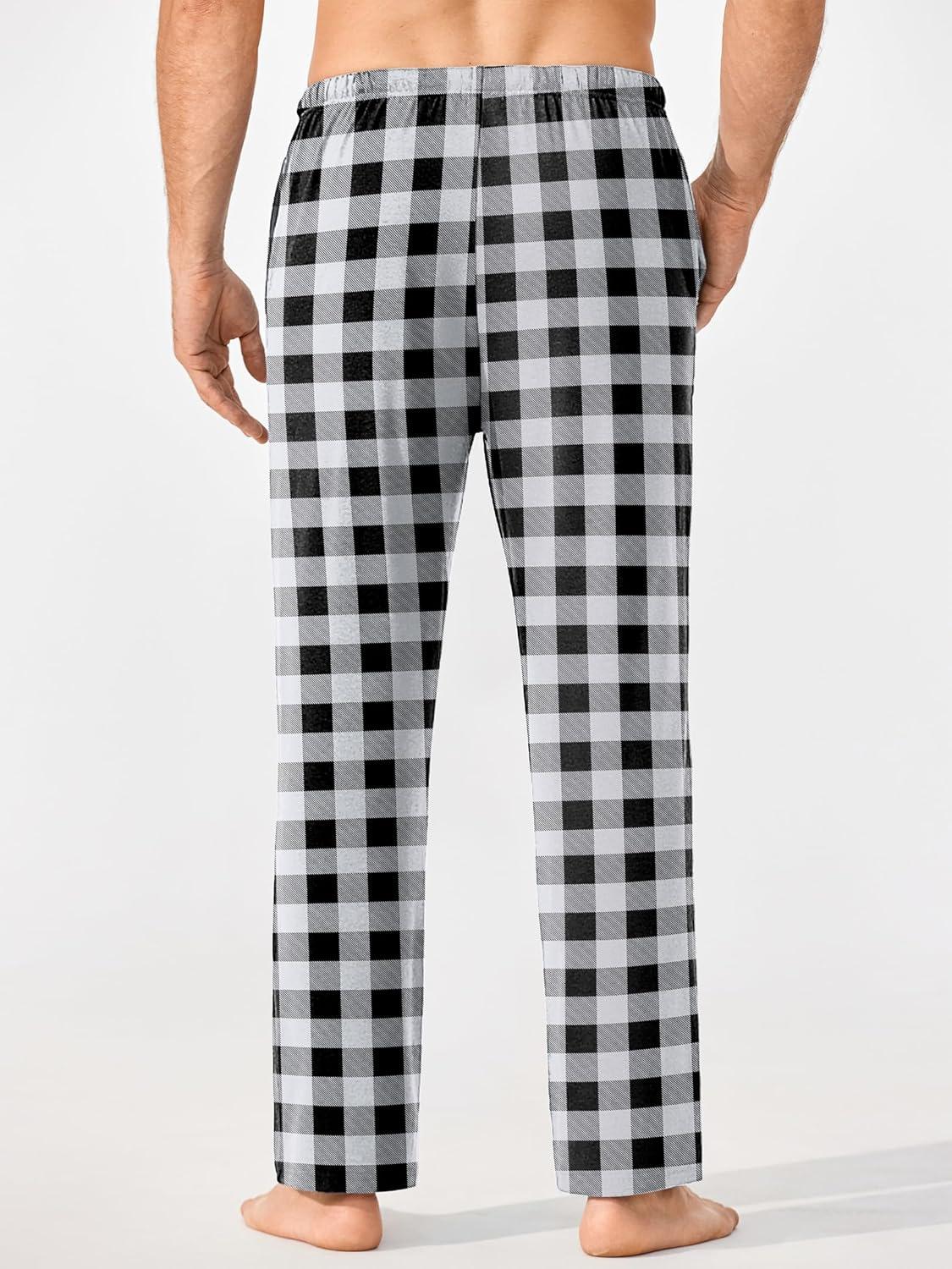 Ekouaer Mens Pajama Pants Lounge Pants with Pockets Soft Sleep Pants Loose Fit Pj Bottoms with Drawstring S-XXL(Black and White Plaid)