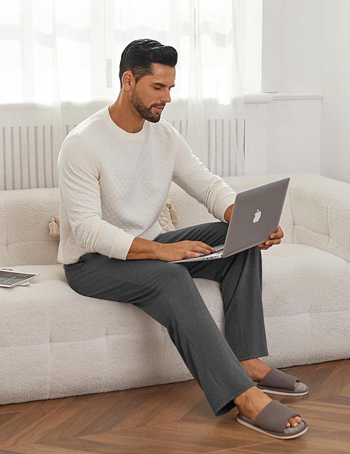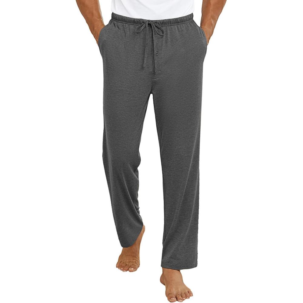 Ekouaer Mens Pajama Pants Lounge Pants with Pockets Soft Sleep Pants Loose Fit Pj Bottoms with Drawstring S-XXL(Deep Grey)