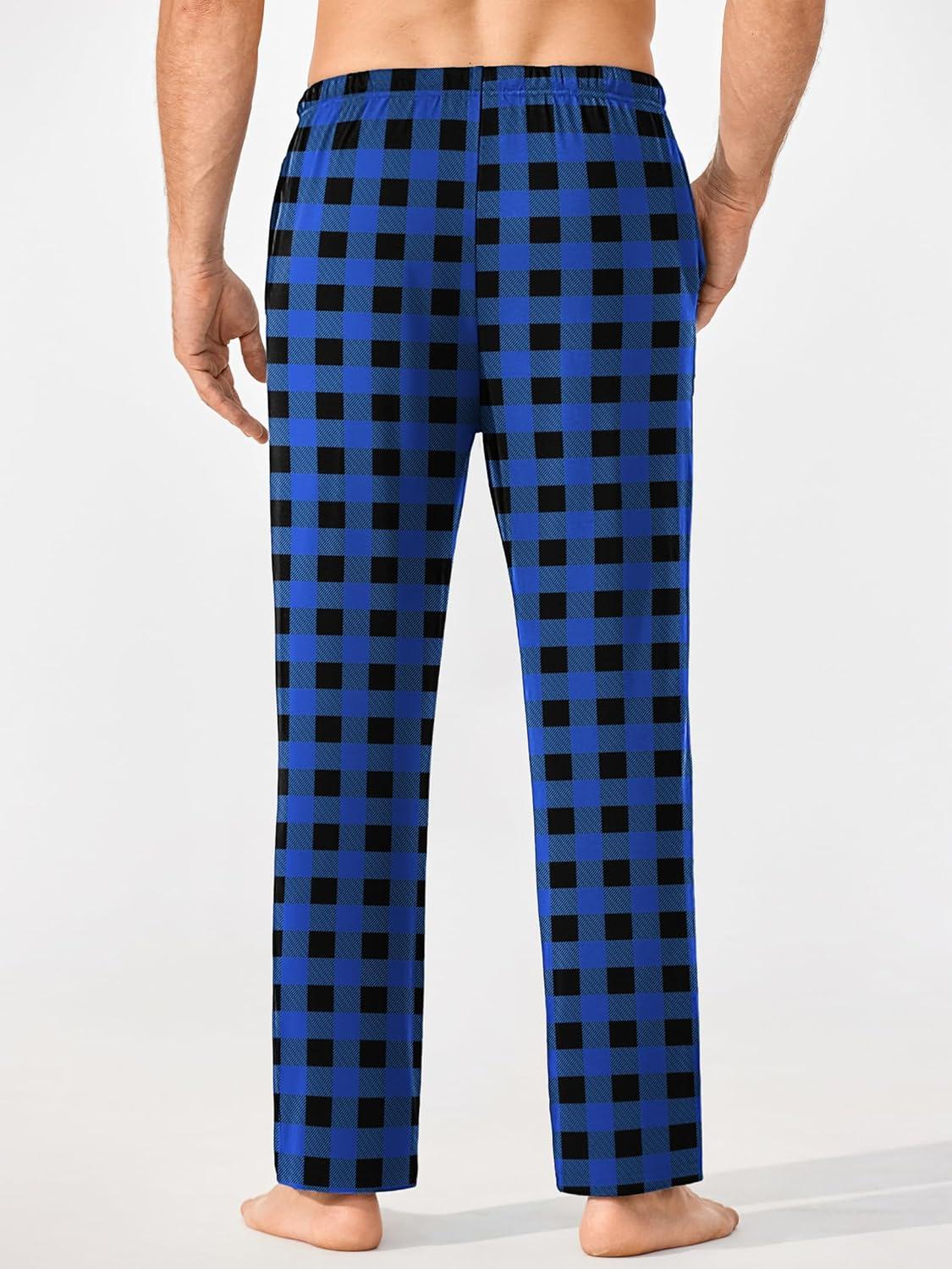 Ekouaer Mens Pajama Pants Lounge Pants with Pockets Soft Sleep Pants Loose Fit Pj Bottoms with Drawstring S-XXL(Red Plaid+blue Plaid)