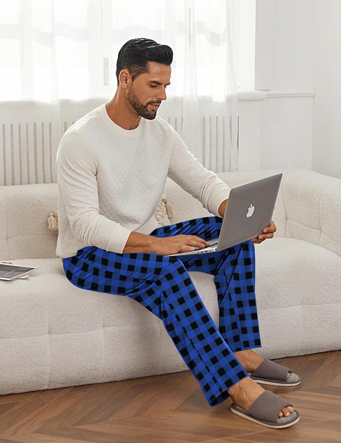 imageEkouaer Mens Pajama Pants Lounge Pants with Pockets Soft Sleep Pants Loose Fit Pj Bottoms with Drawstring SXXLRed Plaidblue Plaid
