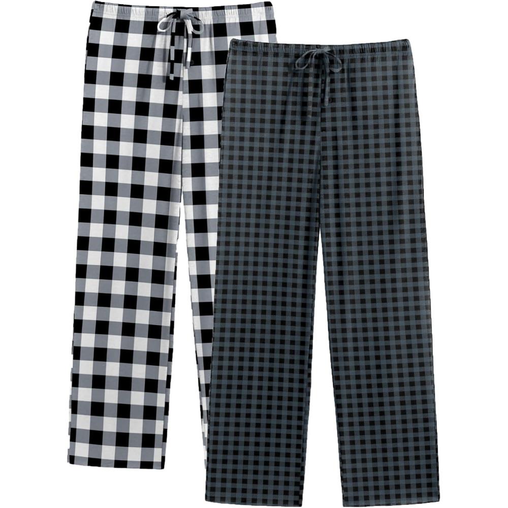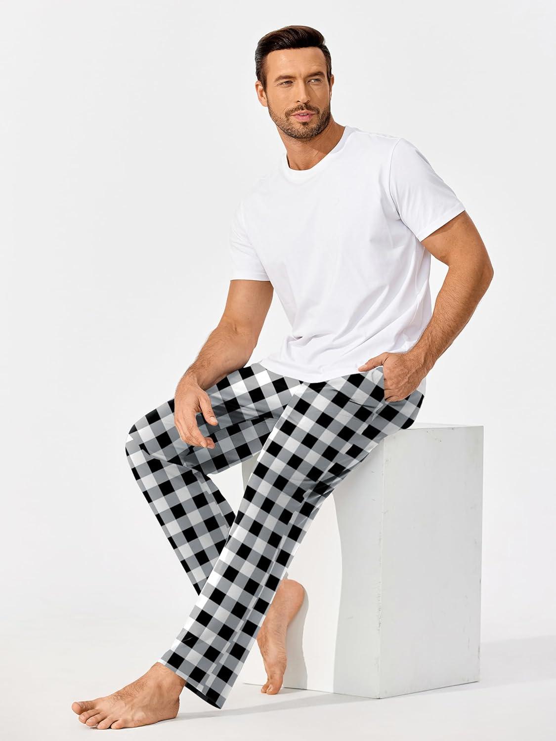 Ekouaer Mens Pajama Pants Lounge Pants with Pockets Soft Sleep Pants Loose Fit Pj Bottoms with Drawstring S-XXL(White Plaid+grey Plaid)