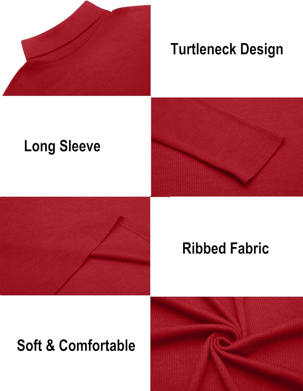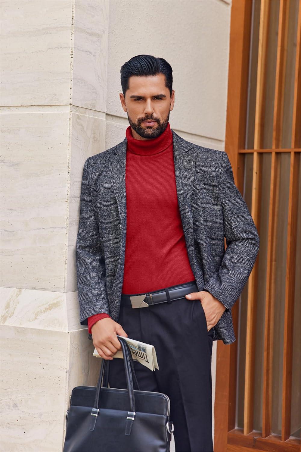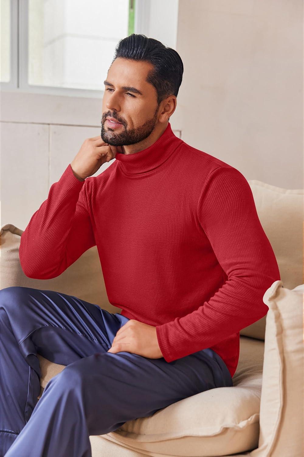 Ekouaer Mens Turtleneck Shirts Ribbed Lightweight Sweater Long Sleeve Casual Pullover Thermal Undershirts S-XXL(Red)