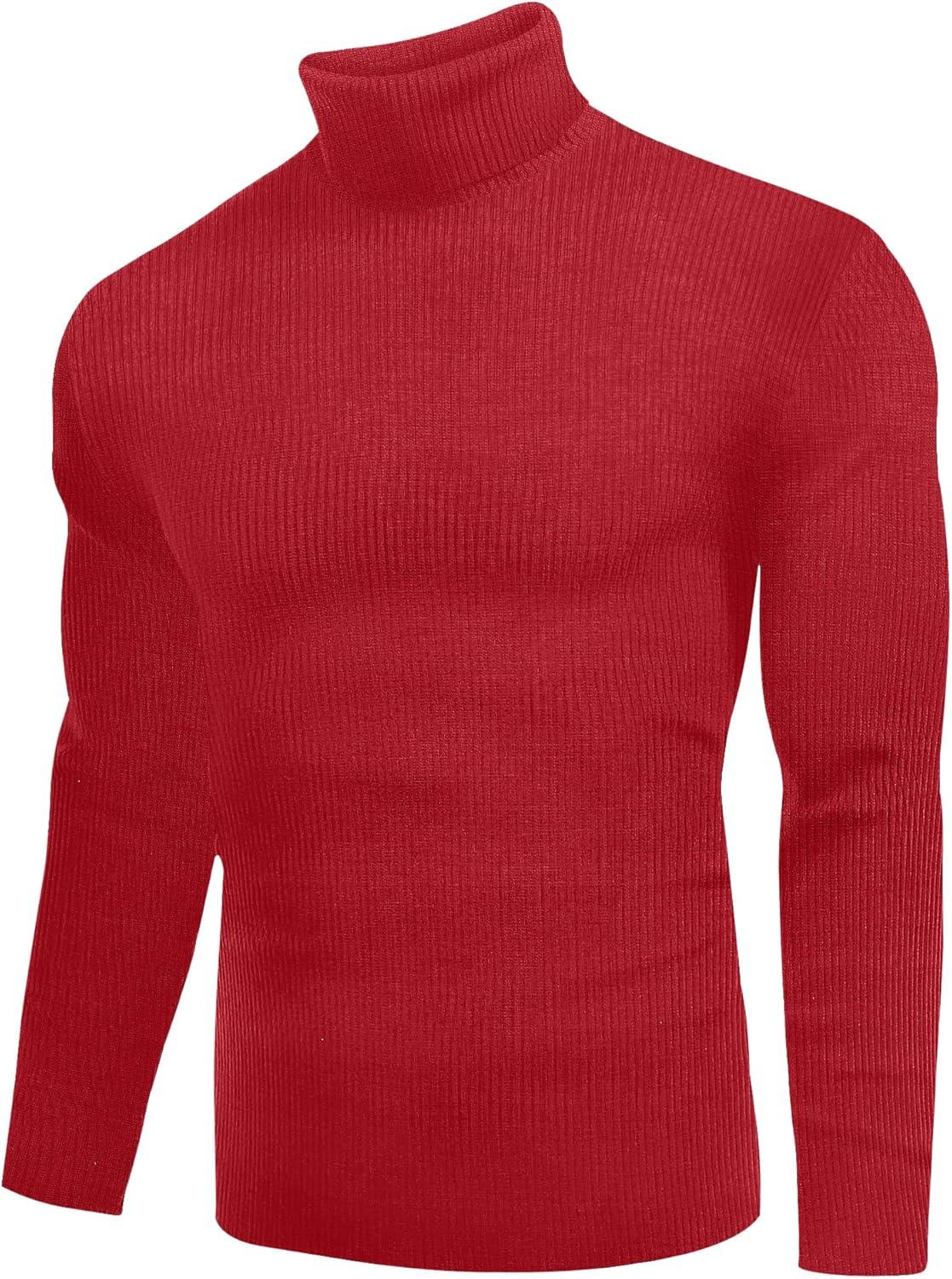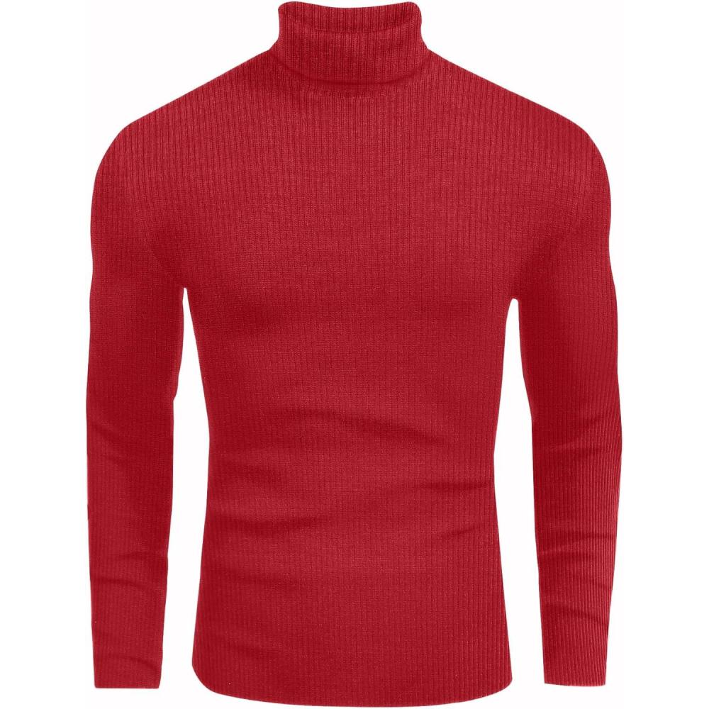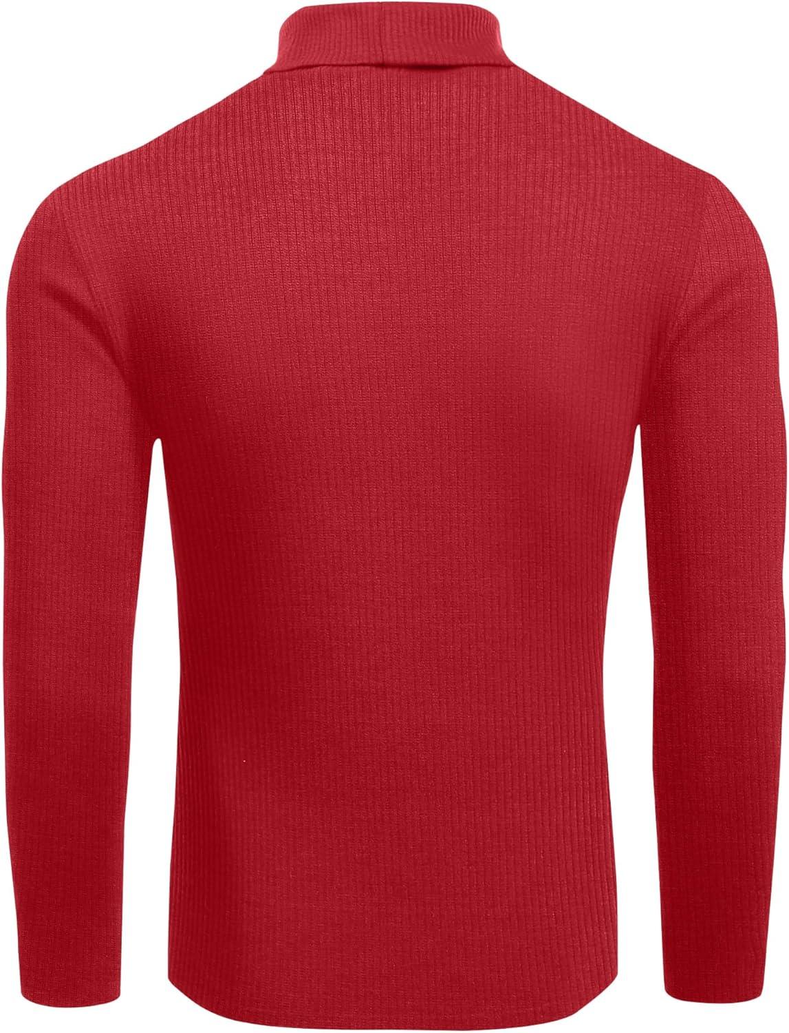 imageEkouaer Mens Turtleneck Shirts Ribbed Lightweight Sweater Long Sleeve Casual Pullover Thermal Undershirts SXXLRed