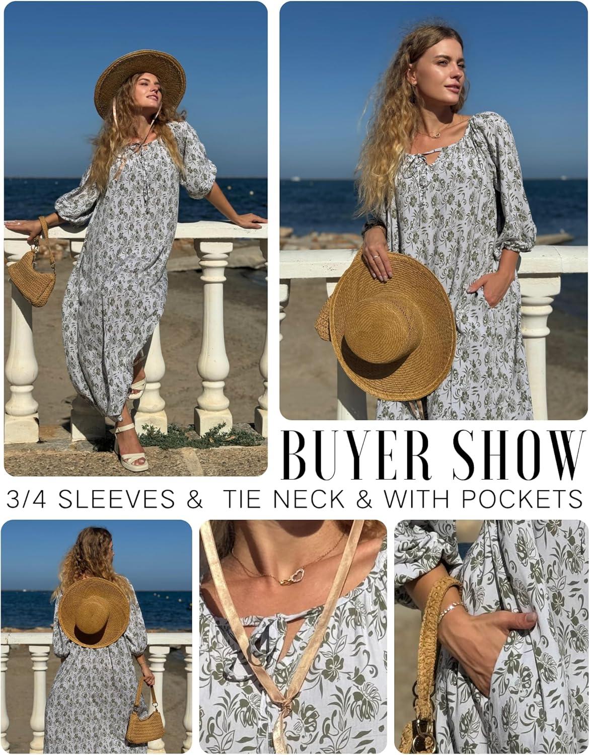 Don’t miss out on our limited-time offer: buy Ekouaer Moo Moos for Women 3/4 Sleeve Long Nightgowns House Dresses with Pocket S-3XL(Green Leaves), get {accessory} free!